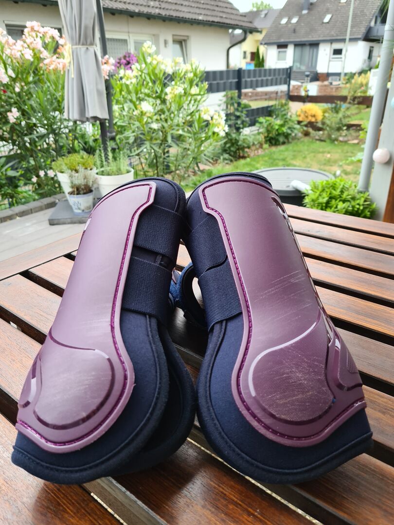 Felix Bühler Gaiters Set X-Full - Set van beenkappen en laarzen. Kleur aubergine. Maat Extra Full. Voorkant gaiters in super conditie, snugglers hebben een paar schaafplekken. Neopreen binnenkant onbeschadigd