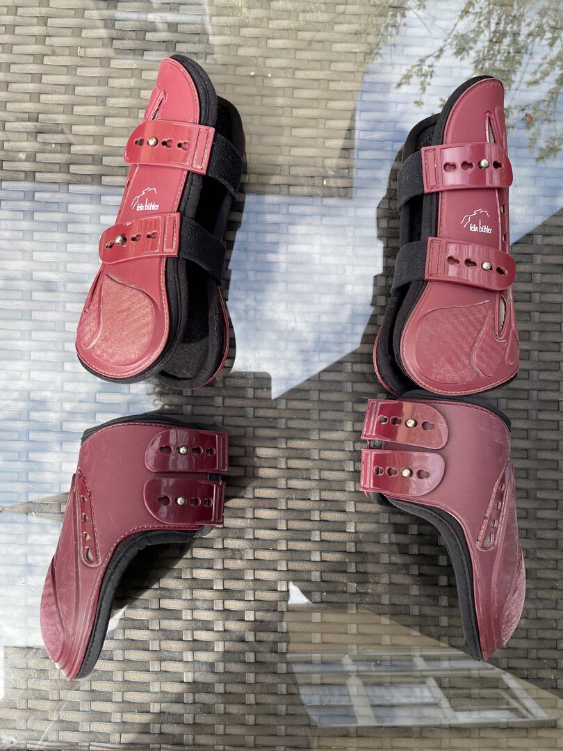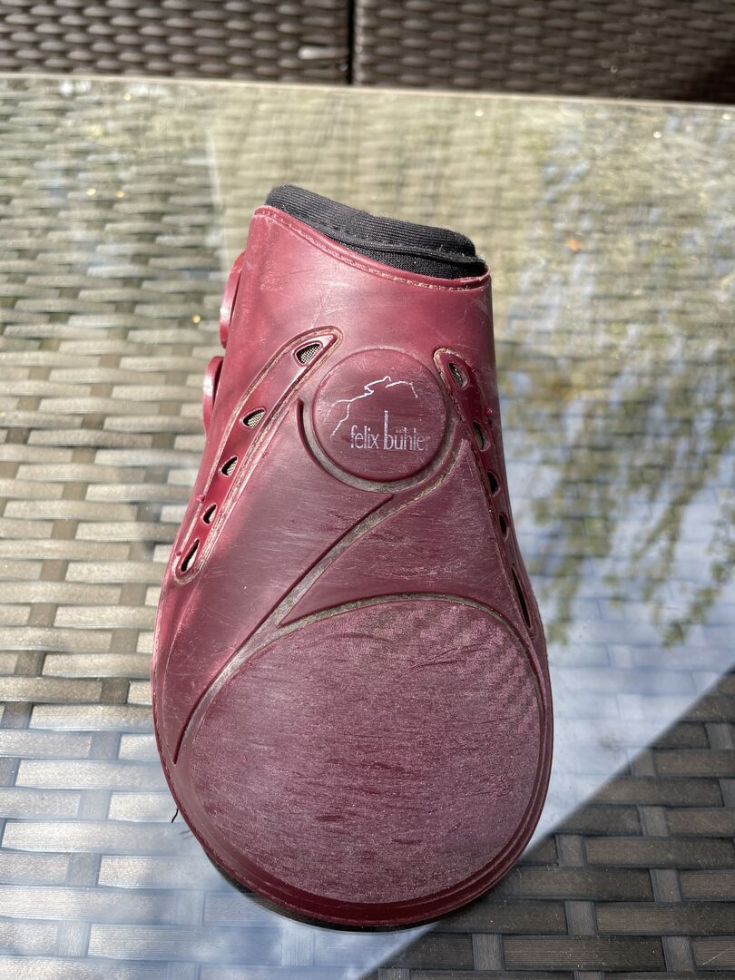 Felix Bühler Horse boots + Strops Aero Dynamic Protection COB - Kousenbroeken: Sportieve innovatieve hardshell beenkappen voor de hoogste eisen en optimaal draagcomfort. De ventilatieopeningen aan de buitenkant en de zachte en geperforeerde binnenvoering van chloropreenrubber zorgen voor een optimale luchtcirculatie langs het peesapparaat. Stootvaste TPU buitenkant met extra streepbescherming in het vetlokgebied. Duurzame snelsluitingen voor eenvoudig gebruik.