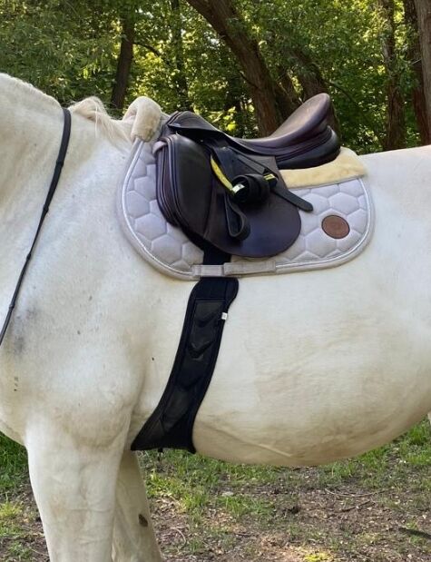 Anatomisch gevormde singel met ruimte voor de ellebogen en een breed contactoppervlak, evenals tweelaagse elastische inzetstukken aan beide zijden voor een gelijkmatige drukverdeling. Gemaakt van robuust, afwasbaar TPU-buitenmateriaal en zachte, schokabsorberende traagschuimvulling, die meegeeft onder druk en dan terugveert in zijn oorspronkelijke vorm. Met 13 ventilatiesleuven voor optimale ventilatie. Middelste D-ring en roestvrijstalen rolgespen.