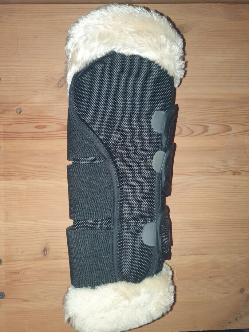 Felix Bühler Overgooier - Hoi, de beenkappen zijn alleen gedragen om te passen, want ze pasten niet. Het zijn zwarte slobkousen met wit pluche en drie plakstrips op elk.