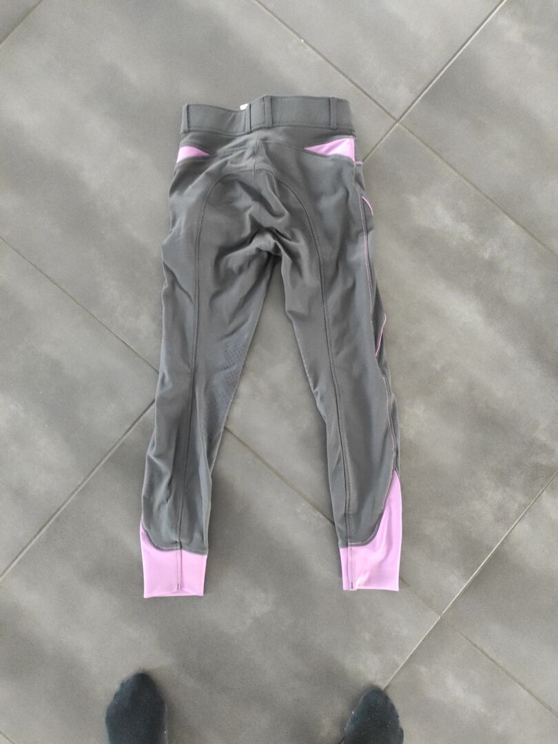 Felix Bühler rijbroek in grijs maat 152 - Zeer goed bewaarde rijbroek van Felix-Bühler in grijs met roze applicaties.