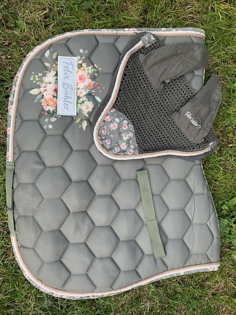 Felix Bühler "Romantic Rose" Set - Ik verkoop deze set "Romantic Rose" van Felix Bühler, bestaande uit een zadeldek (VS/WB) en vliegenoren (WB), beide in goede staat. Naar schatting heeft hij maar 5 keer op het paard gezeten. Ik verkoop het omdat ik overschakel op een dressuurzadel. Het spel is niet langer te koop. NP was 65€. Over de prijs valt te onderhandelen :).