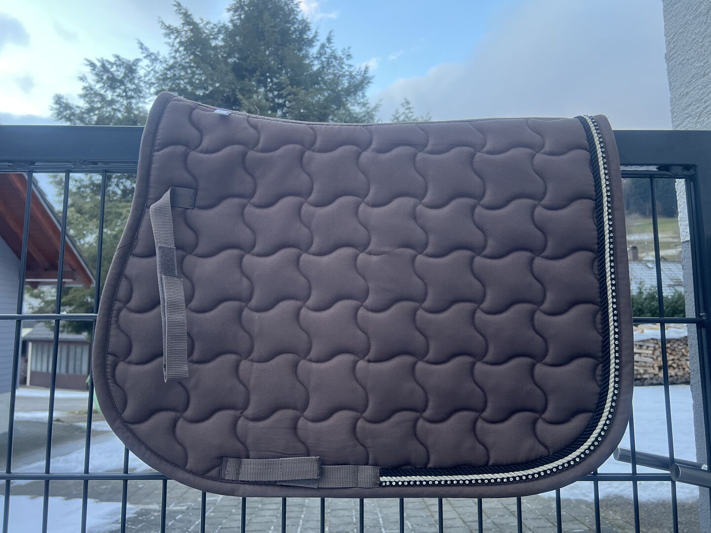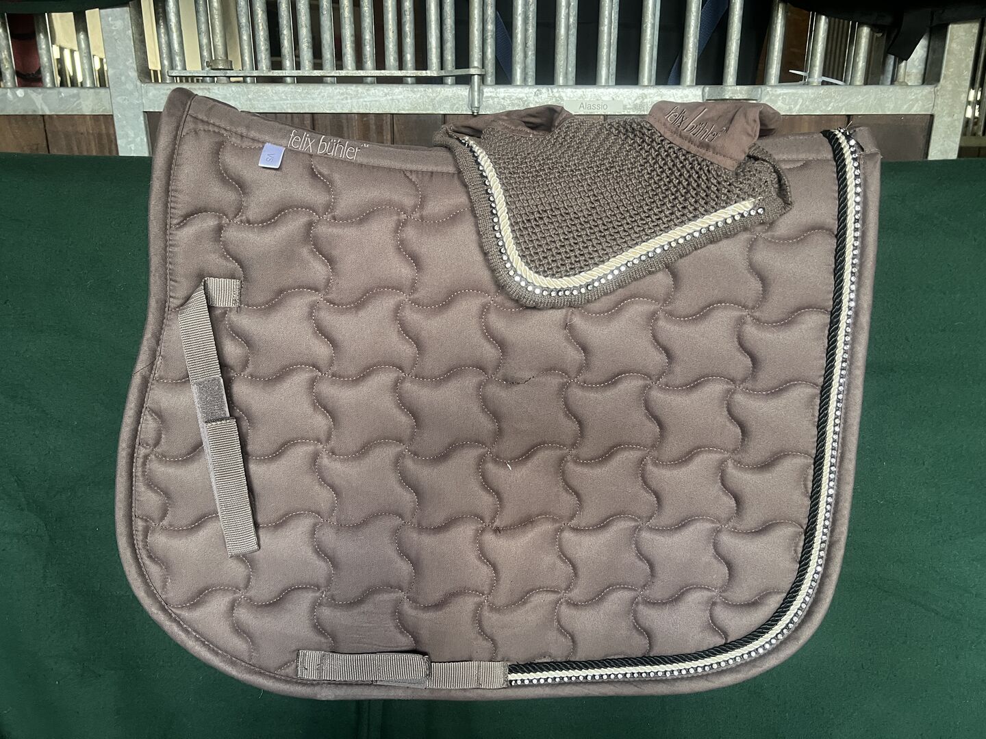 Felix Bühler VS zadeldek set, WB, bruin met glitterrand - Felix Bühler VS zadeldek set met vliegenmuts, WB, bruin met glitterrand