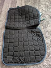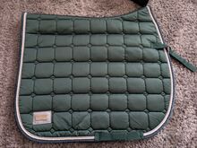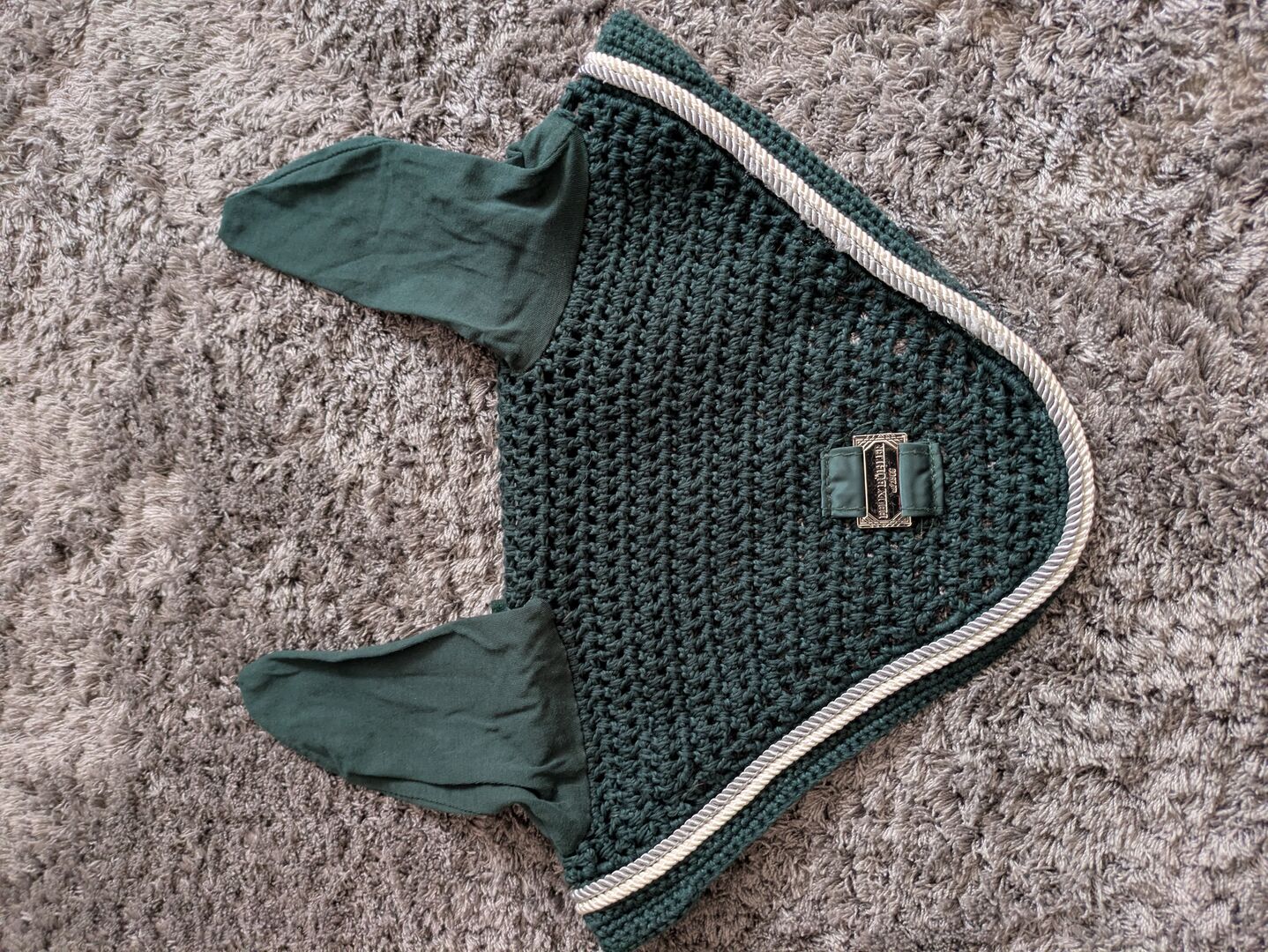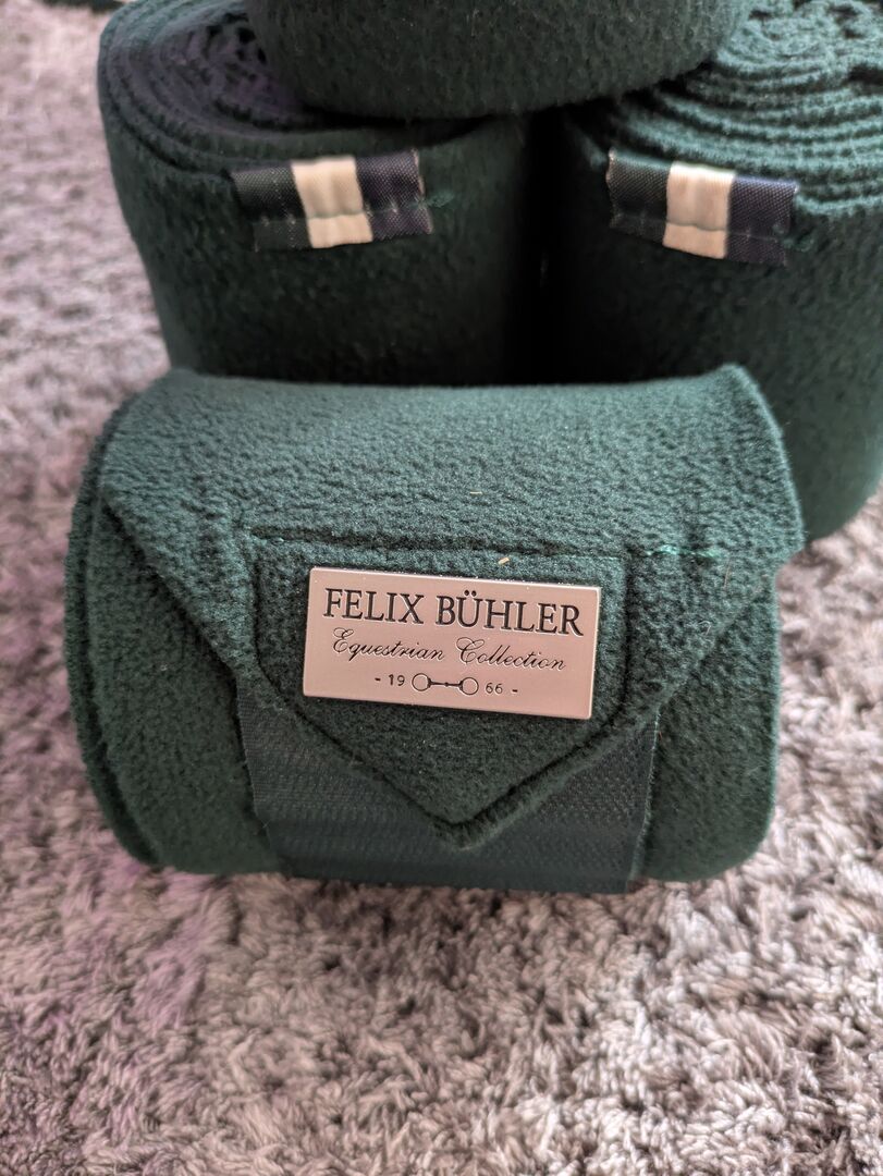 Felix Bühler zadeldek Green Lake, groen, Dr Dressage WB set - Topconditie, is maar een paar keer op het paard geweest en altijd met zorg behandeld zoals te zien is op de foto's. Het vliegenmutsje kan aan het hoofdstel worden bevestigd met het klittenband, de bandages zijn zo gewikkeld dat ze direct aan het paard kunnen worden bevestigd. (Ik heb er één andersom gewikkeld zodat je de sluiting kunt zien). Het zadeldek is ook in topconditie, net als alle andere items.