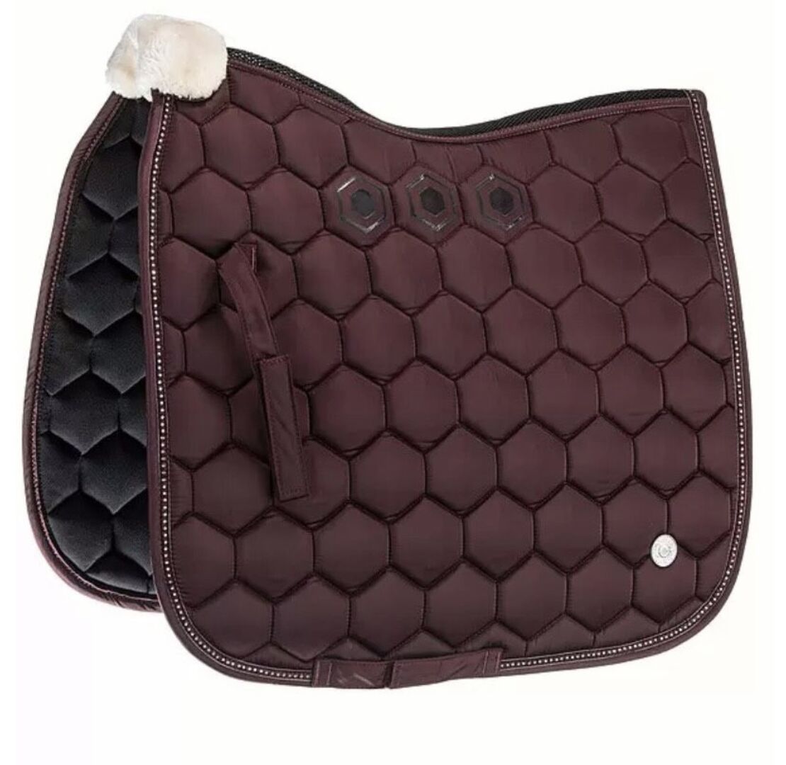 Felix Bühler Zadeldek Luxe Diamanten - Nieuw zadeldek, niet eens gebruikt. Maat VS Originele beschrijving: Elegant zadeldek met omranding door fluwelen backed rij fonkelende witte glittersteentjes en opvallend glinsterend metalen logoplaatje. Zijdezacht bovenmateriaal met zacht teddy fleece schoftkussen. Zadel- en singellussen met praktische KV's. Onderkant van vochtabsorberend en ademend air mesh materiaal. 100% polyester. P: ruglengte 53 cm, diepte 47 cm (snit = VS). DR: ruglengte 60 cm, diepte 53 cm VS: ruglengte 59 cm, diepte 53 cm