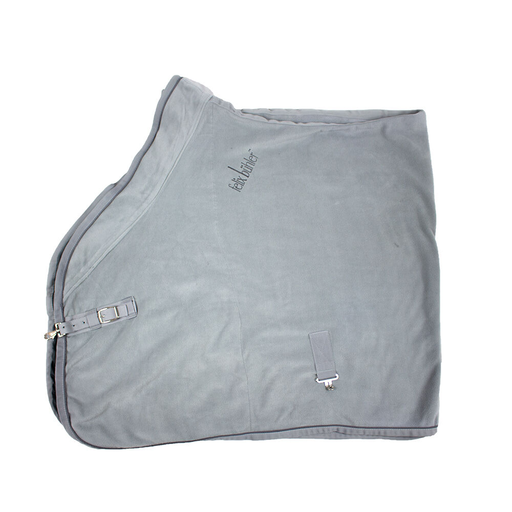 Felix Bühler Zweetdeken grijs 145 - Dit geweldige tapijt van Felix Bühler vergezelt u door de winter. De grijze fleece deken heeft een bijzonder brede en comfortabele fleece kraag bij de schoft en de hals, die beschermt tegen schuren. De onderkant heeft een glad materiaal dat de wind beter tegenhoudt. Voorzien van kruissingels en verstelbare crupper. Het tapijt heeft maat 145 en is in zeer goede staat met slechts zeer lichte gebruikssporen. To the seller's offerlaunch
