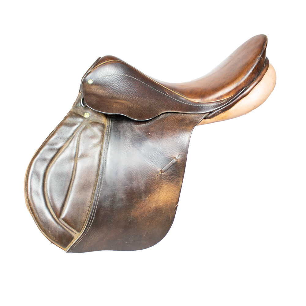 Het springzadel vertoont tekenen van slijtage. Dankzij de hoge kwaliteit van de afwerking, maken de kleine oneffenheden geen verschil voor de werking. Het heeft krassen en slijtage op het leer.