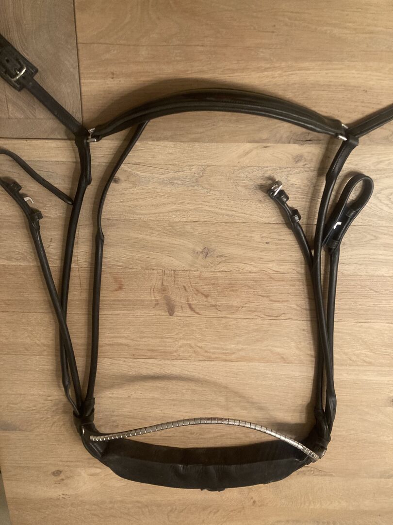 Finesse hoofdstel Spirit / Cathrine Dufour - Finesse snaffels zijn speciaal ontwikkeld om de druk van de nek beter te verdelen en te verminderen. Het speciale kenmerk is de vulling van het kopstuk. Het materiaal komt uit de medische technologie en is ontwikkeld voor bedlegerige mensen. Meer informatie Finesse Hoofdstellen. NP 395