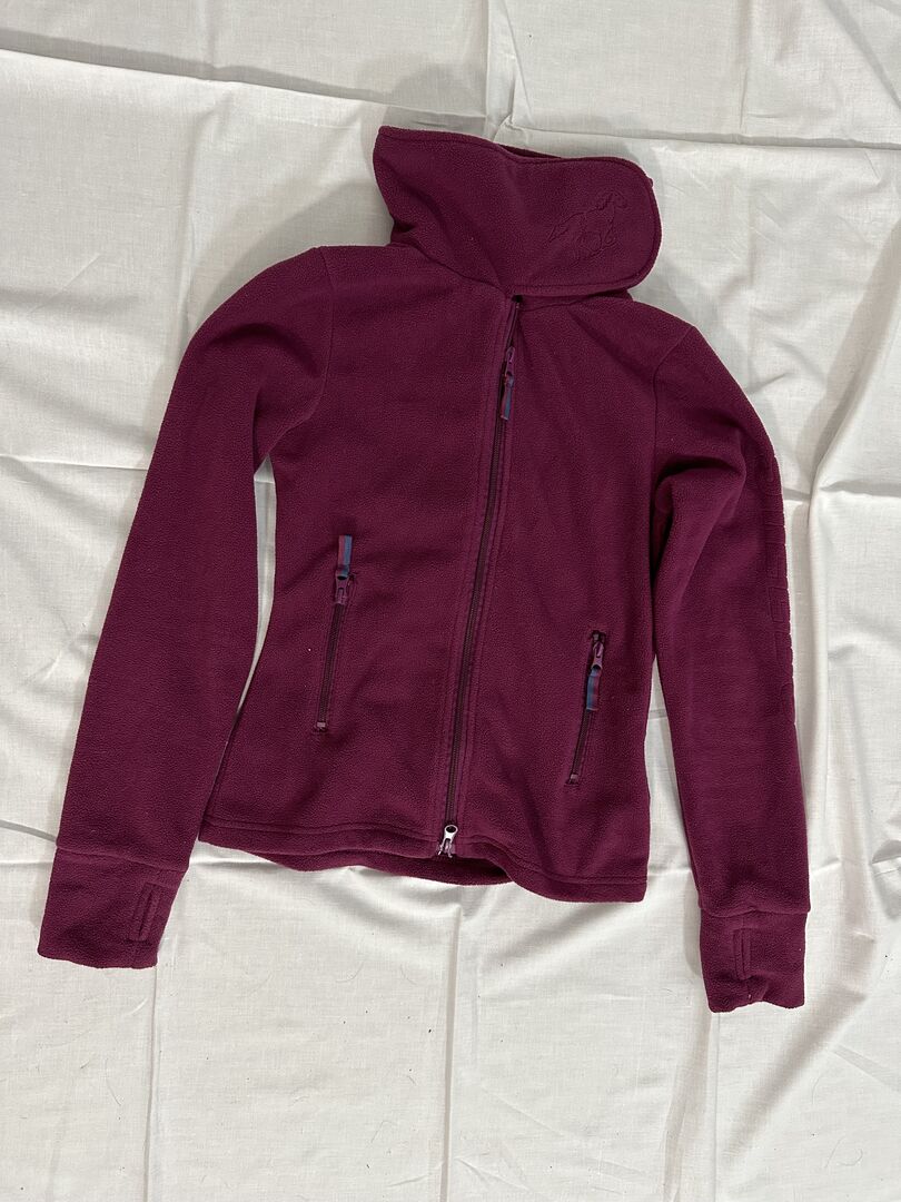 Fleecejas Steeds 164 bessenkleur - Fleece jas van Steeds in maat 164cm voor kinderen in een berry kleur. Jas met individuele hoge kraag die te verstellen is met klittenband. Met duimgat. Bevestigbare jaszakken. De ritssluiting en klittenbandsluiting werken perfect. Jas is maar een paar keer gedragen.