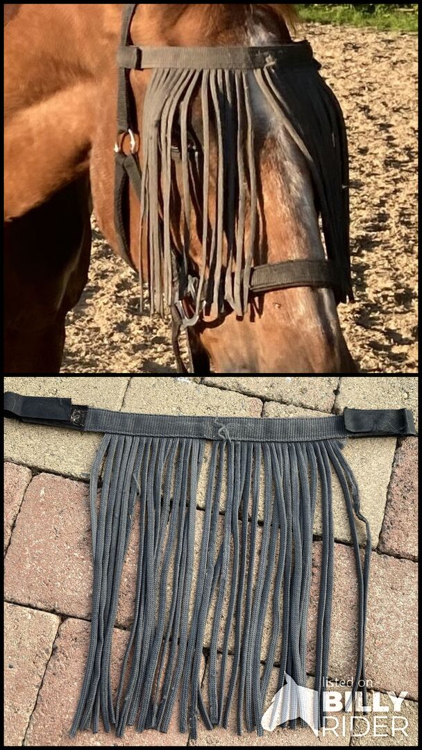 Fly Hoofdband Fly Koord Hoofdband Donkergrijs - Ik verkoop een vliegenhoofdband zoals op de foto. Een beetje gebruikt door "schuren" door het paard maar compleet. Maat volbloed
