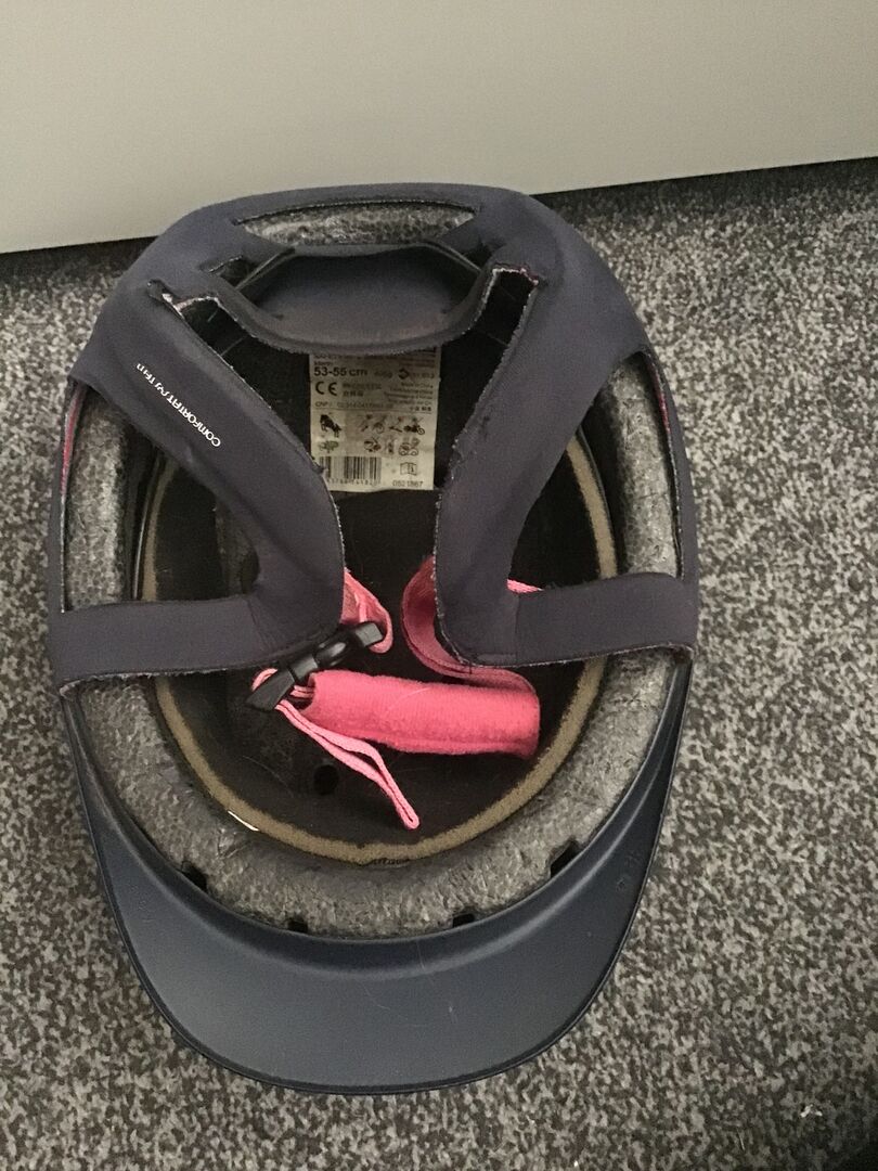 FOUGANZA rijhelm | maat 53-55 cm - Ik verkoop mijn rijhelm van Fouganza. Het is een half jaar gedragen en heeft slechts een paar kleine krasjes (nog geen valpartijen). Maat 53-55 cm hoofdomtrek. Neem contact met me op als je geïnteresseerd bent 🙂!