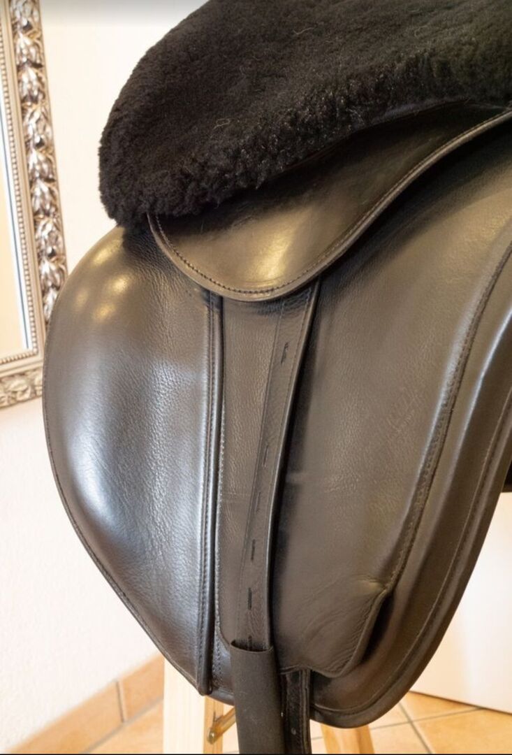 Freeform zadel DKR SB Dressuur - Ik verkoop mijn boomloze Freeform zadel DKR met veel accessoires. Gemaakt van hoogwaardig Italiaans leer, made in Italy. Onderstel: Maat SB = Shortback 51 cm, bovenkant glad leer zwart, onderkant Verlour leer zwart, 13 cm uitsparing (voor paarden met normale schoft), klittenband, klittenband flap nr. 25, zonder sierstiksels. Zadel: Dressuur, 18,5 inch (past bij damesmaat 40/42), glad leer zwart, met zwarte enduro flaspen. Open stijgbeugelbevestiging (te rijden met standaard stijgbeugelriemen en stijgbeugels, deze zijn niet inbegrepen). Klittenband SB zonder neus. Stijgbeugel zwart. Matte lamsvacht zadelhoes voor Freeform zadel 18,5 inch, zwart.