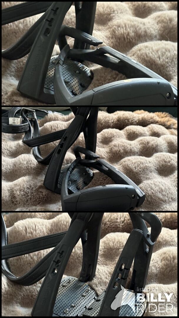 Freejump Soft up stijgbeugels, zwart en zo goed als nieuw! - De stijgbeugels zijn samen met de Daztel en singel gekocht en zijn, net als al het andere, zo goed als nieuw. Particuliere verkoop : Geen garantie of retournering!
