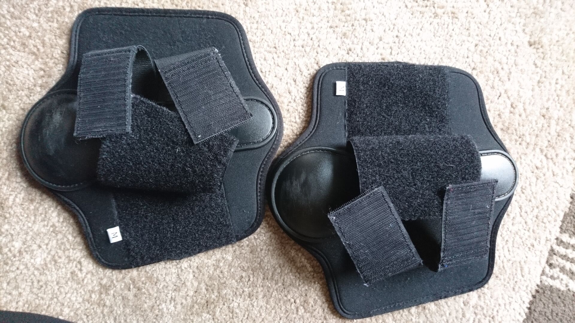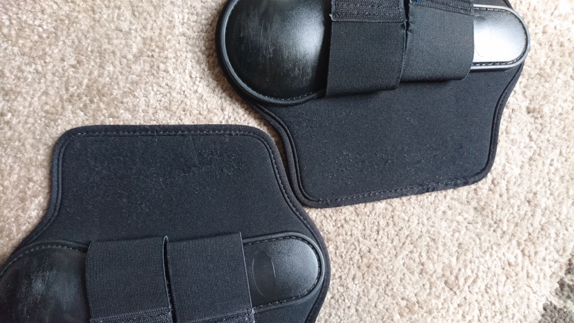 Gaiters Voorpoten - Helaas moeten wij onze hobby met pijn in het hart en om gezondheidsredenen opgeven. Daarom bieden wij een paar zwarte beenkappen aan, voor de voorkant, in maat M. Zachte en soepele beenkappen met een stabiele lepel en dubbele klittenbandsluiting. We voegen een tweede paar slobkousen (M) in het rood toe, omdat ze te goed zijn om weg te gooien (zie foto's en ze zijn niet in functie verminderd). Beide beenkappen zijn pas gewassen. Er kunnen nog een paar haren op zitten. Metingen: zwart: lengte ca. 24 cm en breedte ca. 23-24 cm rood: lengte ca. 25 cm en breedte ca. 24 cm.