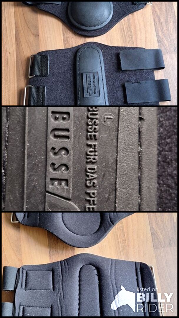 Gangboorden - Zwarte neopreen beenkappen. Busse maat F met klittenbandsluiting. ONGEDRAGEN. Particuliere verkoop, geen garantie en geen retournering