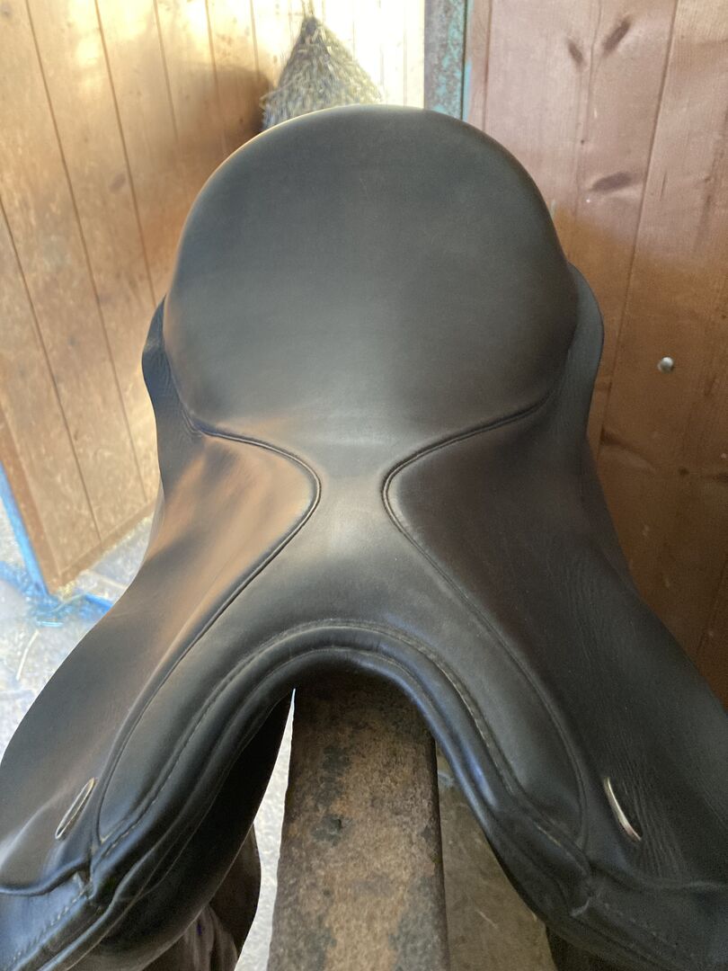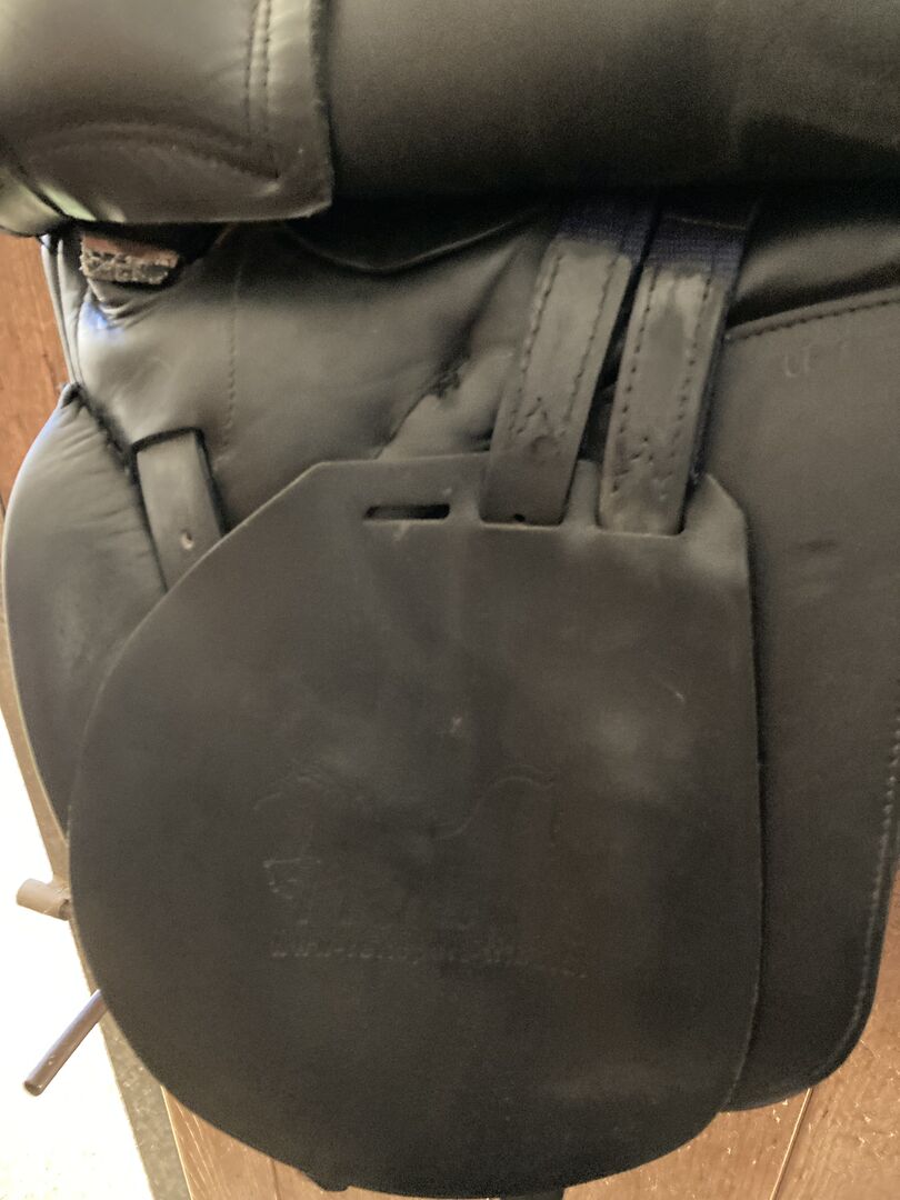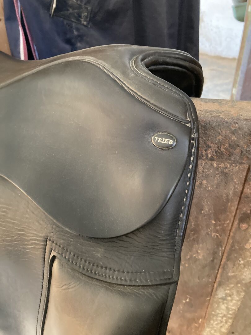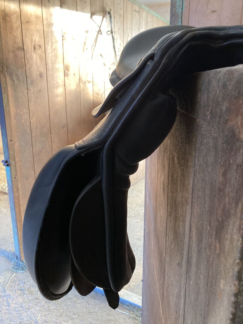 Geweldig verenboomzadel, zwart, altijd zeer goed verzorgd en meerdere malen opgevuld geweest, incl. zadelklep, schedelbreedte 15 cm, zitlengte ca. 42 cm.