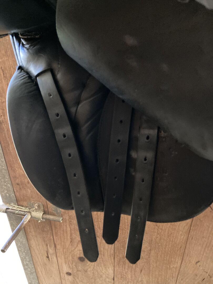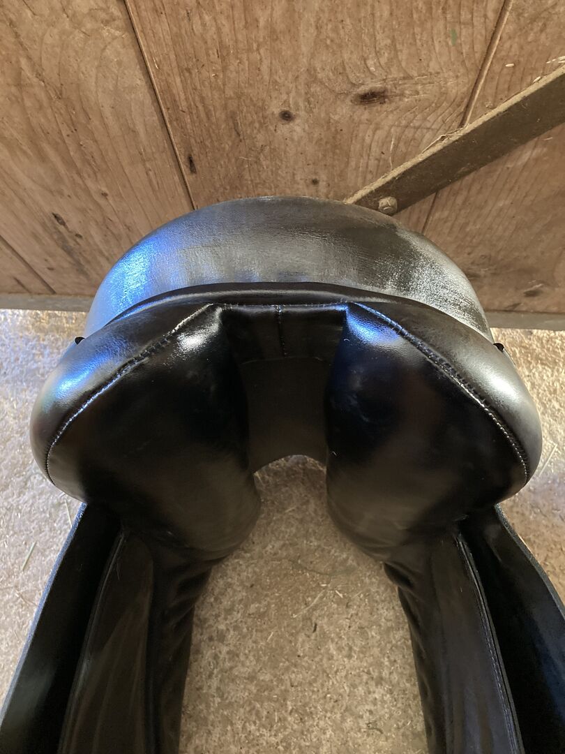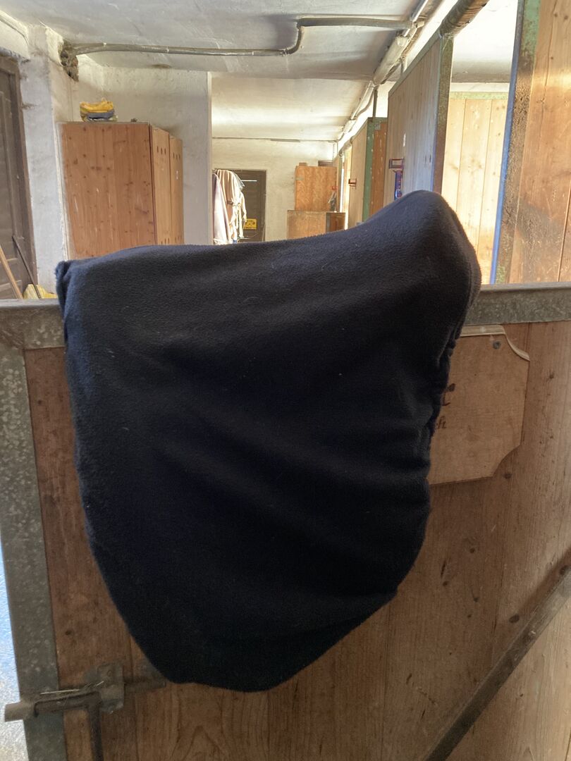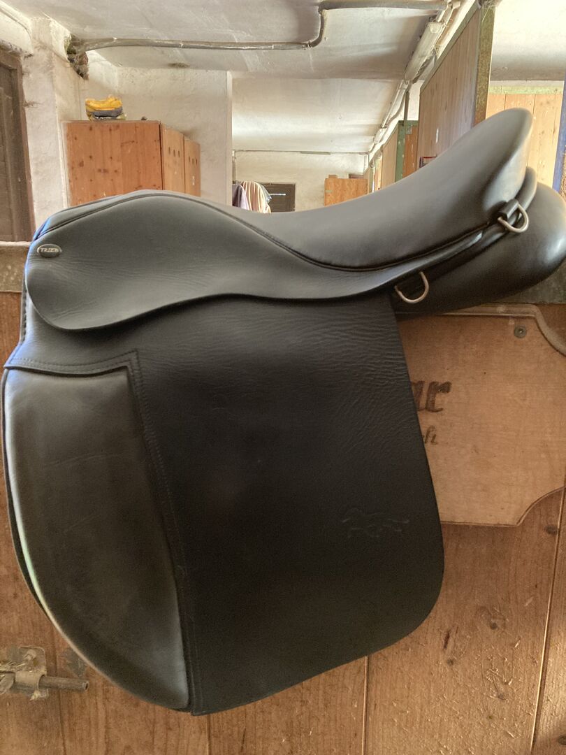 Geweldig verenboomzadel, zwart, altijd zeer goed verzorgd en meerdere malen opgevuld geweest, incl. zadelklep, schedelbreedte 15 cm, zitlengte ca. 42 cm.