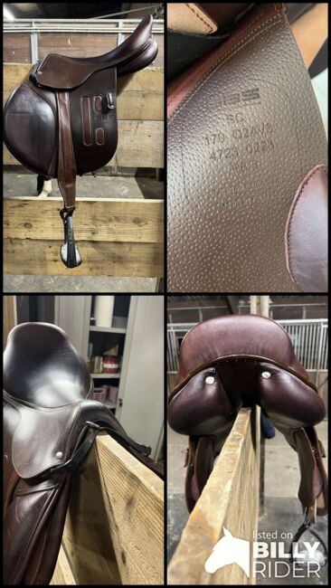 Schitterend GBS semi-hol zadel, model 2023, in bruin leer.Maat 17 inch, kwartieren 2AV3.Elegante afwerking met mokka gelakte achtervalance en stijgbeugelriemen.