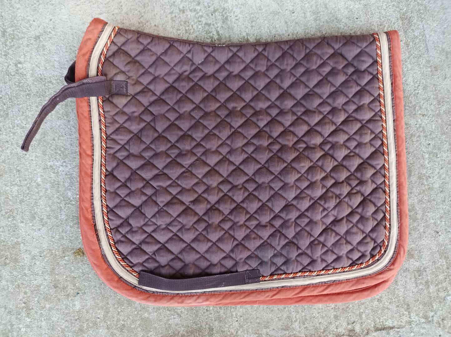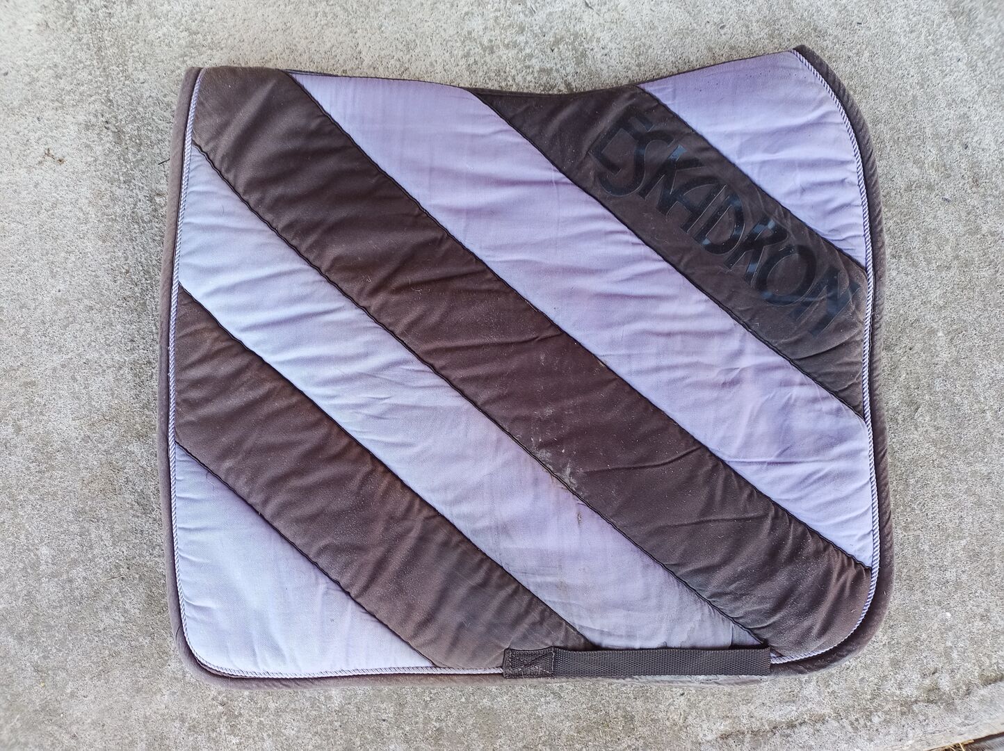 Gebruikte dressuur zadeldekjes - Pakket van drie gebruikte dressuurzadeldekjes, waaronder een nieuwe witte en een Eskadron met mooie dikke vulling. Prijs incl. verzending.