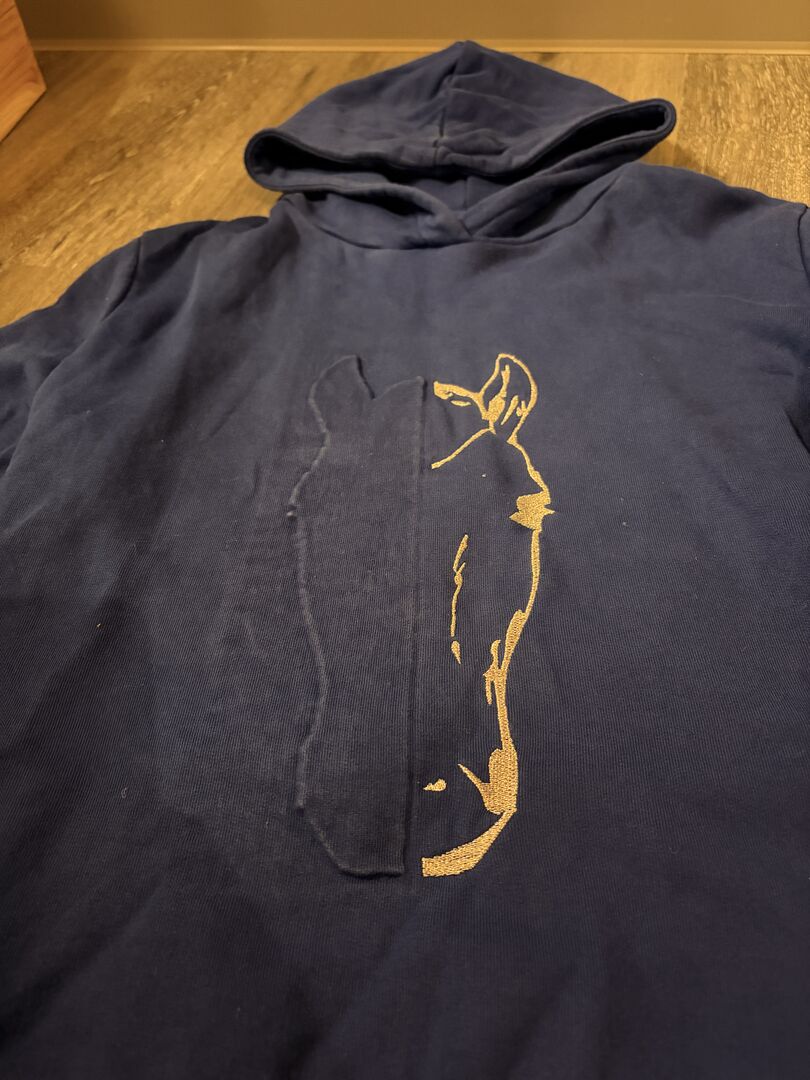 GeeGee Hoodie Brianna Koningsblauw L - Ik verkoop hier een 2x gedragen trui van het merk GeeGee. Het is het model Brianna, dat online helemaal uitverkocht is. De trui is in perfecte staat en is uiteraard schoongemaakt. De kleur is koningsblauw en is vrij kleurecht op de eerste foto. De maat is L. NP: 85€.