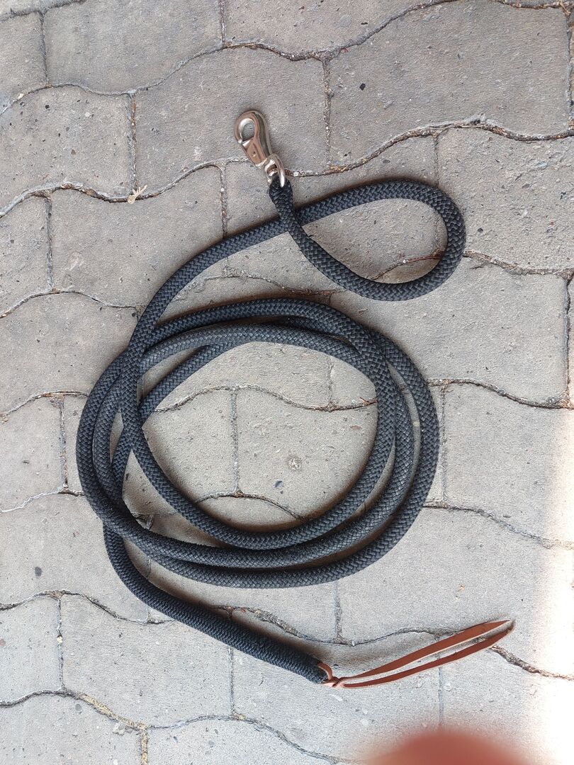 2. western touw - ideaal voor grondwerk - 4,2 m lang - zware kwaliteit - 100% polypropyleen - zwart - met lederen flap