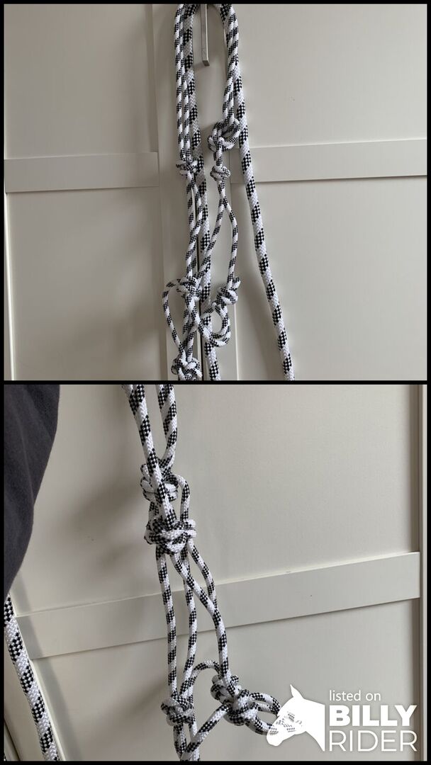 Geknoopte halsterset wit/zwart gedessineerd - Nooit gebruikt knoop halster met bijpassend touw ook nieuw en nooit gebruikt !