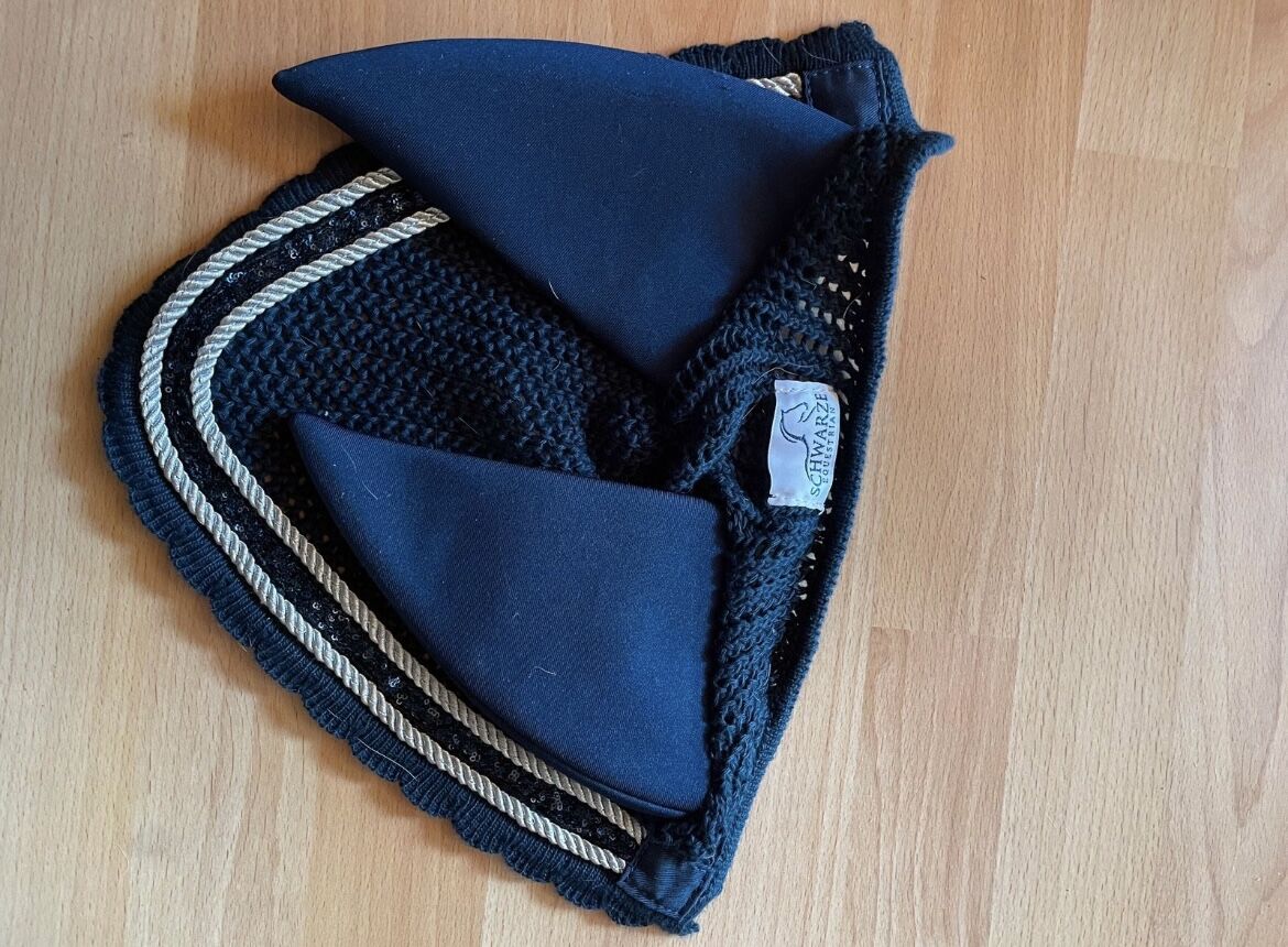 Geluidloze Vliegenmuts Vliegenoren Wb in blauw - Aanbieding hier Soundless Fly Cap van Schwarze Equestrian