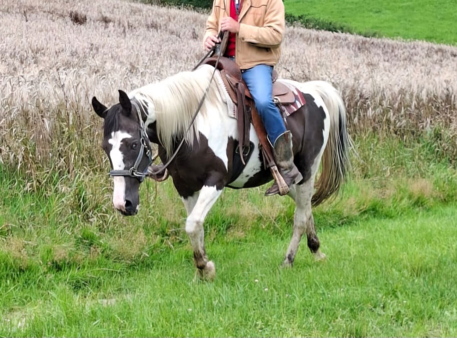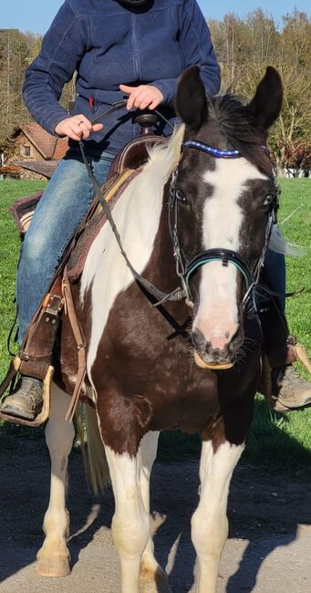 Gereserveerd! Betrouwbaar, heerlijk vrijetijdspaard - Lissy is een heel mooi bont merrieveulen met twee halfblauwe ogen. Ze kent geen slechte gewoontes zoals klimmen, springen, bijten etc. Lissy houdt van haar ontspannen cross-country uitstapjes en is een betrouwbare partner. Ze kent ook alle basisprincipes in de rijbak. Ze is western gereden en kan altijd en overal zonder problemen op- en afgestapt worden. altijd mogelijk. Lissy's nieuwe thuis is bij een paardenliefhebber met kennis van zaken en een groot paardenhart. Lissy is geen gewichtdrager, loopt blootsvoets en vertoont geen ziekteverschijnselen. Proeftraining is altijd mogelijk