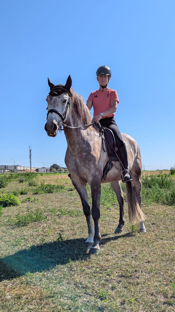 Remate Rae "Willi" is een prachtige Lusitano ruin, geboren in 2021, met een stokmaat van ca. 157 cm en in een edele grijze kleur. Hij is geboren in Portugal bij een bekende fokker (Andrade) en geïmporteerd naar Duitsland op de leeftijd van 2,5 jaar. Willi is compact en harmonieus gebouwd, zeer goed geproportioneerd en maakt indruk met zijn grote uitstraling en zijn hoogwaardige stamboom. Hij is gezond en robuust en heeft tot op heden geen kreupelheden, koliek of allergieën etc. gehad. Toen hij in Duitsland aankwam, vertoonde hij kortstondig wat licht couperen, wat hij na een paar dagen volledig stopte. Willi peddelt niet met zijn voorbenen en is aangenaam en comfortabel om op te zitten. Qua karakter is Willi een uitzonderlijk vriendelijk, eerlijk en mensgericht paard. Hij is ruimdenkend, braaf, intelligent, speels en zeer goed gemanierd. Zijn grote bereidheid om te leren, zijn talent en zijn plezier in het werk maken van hem een heel bijzondere partner. Willi is altijd gemotiveerd, meewerkend en betrouwbaar en heeft een groot hart. Willi is ongecompliceerd en braaf. Hij is vertrouwd met stallen, grazen en hoeden en is absoluut compatibel met kuddes. Hij is braaf en rustig bij de hoefsmid en tijdens het laden. Hij is ook gewend aan verschillende omgevingsprikkels en is vertrouwd met landbouwvoertuigen, honden, wegen, kinderen en nog veel meer. De ruin werd voorzichtig ingereden toen hij vier jaar oud was en ondergaat momenteel een leeftijdsgerichte, solide training in de geest van de École Légèreté. Hij kent de binnenbak, rijbak en cross-country, is zeer volgzaam in het klassieke werk aan de hand en kent ook het vrije werk. Onder de ruiter is hij afgestemd op fijne hulpen, toont geen ondeugendheid en heeft goede basisgangen. Zijn training is georganiseerd met veel nadruk op gezondheidsbehoud en duurzaamheid. Willi is ideaal voor working equitation, dressuur, western riding of veelzijdig vrijetijdsrijden op een goed niveau. Met verdere aanmoediging en een consequente, paardgerichte training zal hij zich ontwikkelen tot een betrouwbaar paard. We zoeken een ervaren ruiter met een maximaal ruitergewicht van rond de 80 kg, idealiter met ervaring met jonge paarden, die bereid is om hem samen met een trainer verder op te leiden. Hij wordt niet aan kinderen of beginners gegeven. De eigenaren zijn op zoek naar een langdurig, liefdevol thuis met begrip voor een verantwoorde training en om hem gezond te houden. We verkopen hem met pijn in het hart omdat hij het paardrijden heeft opgegeven en alleen in ondersteunende, waarderende handen zal worden gegeven. Willi is een paard van hoge kwaliteit met geweldige vooruitzichten, veelzijdigheid en een uitzonderlijk karakter. To the seller's offerlaunch