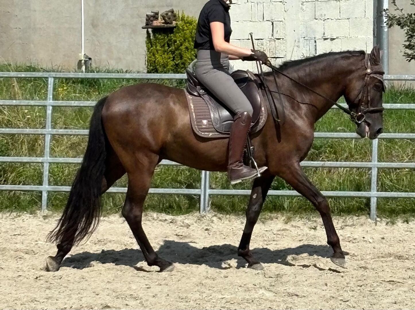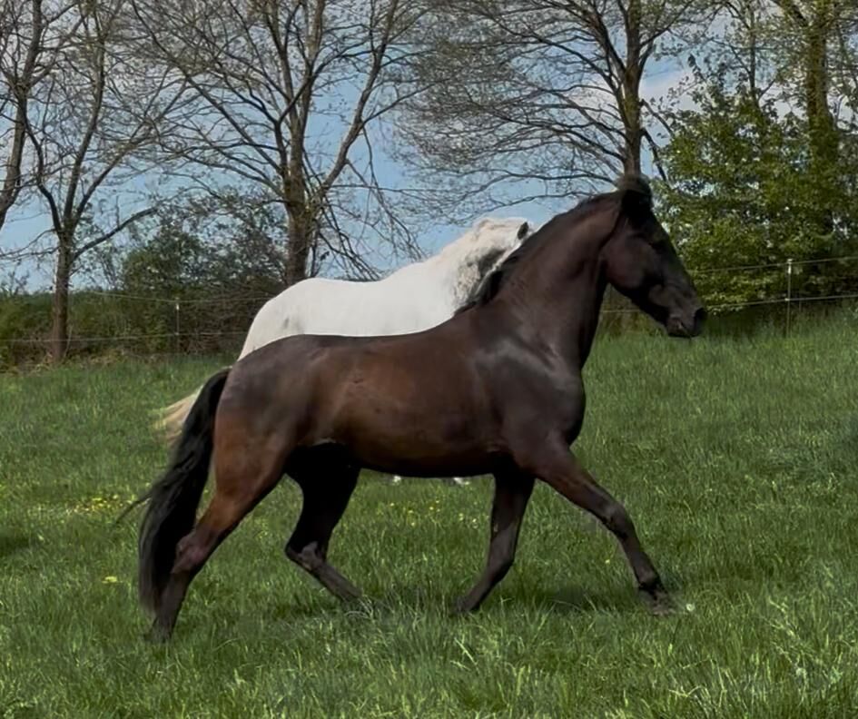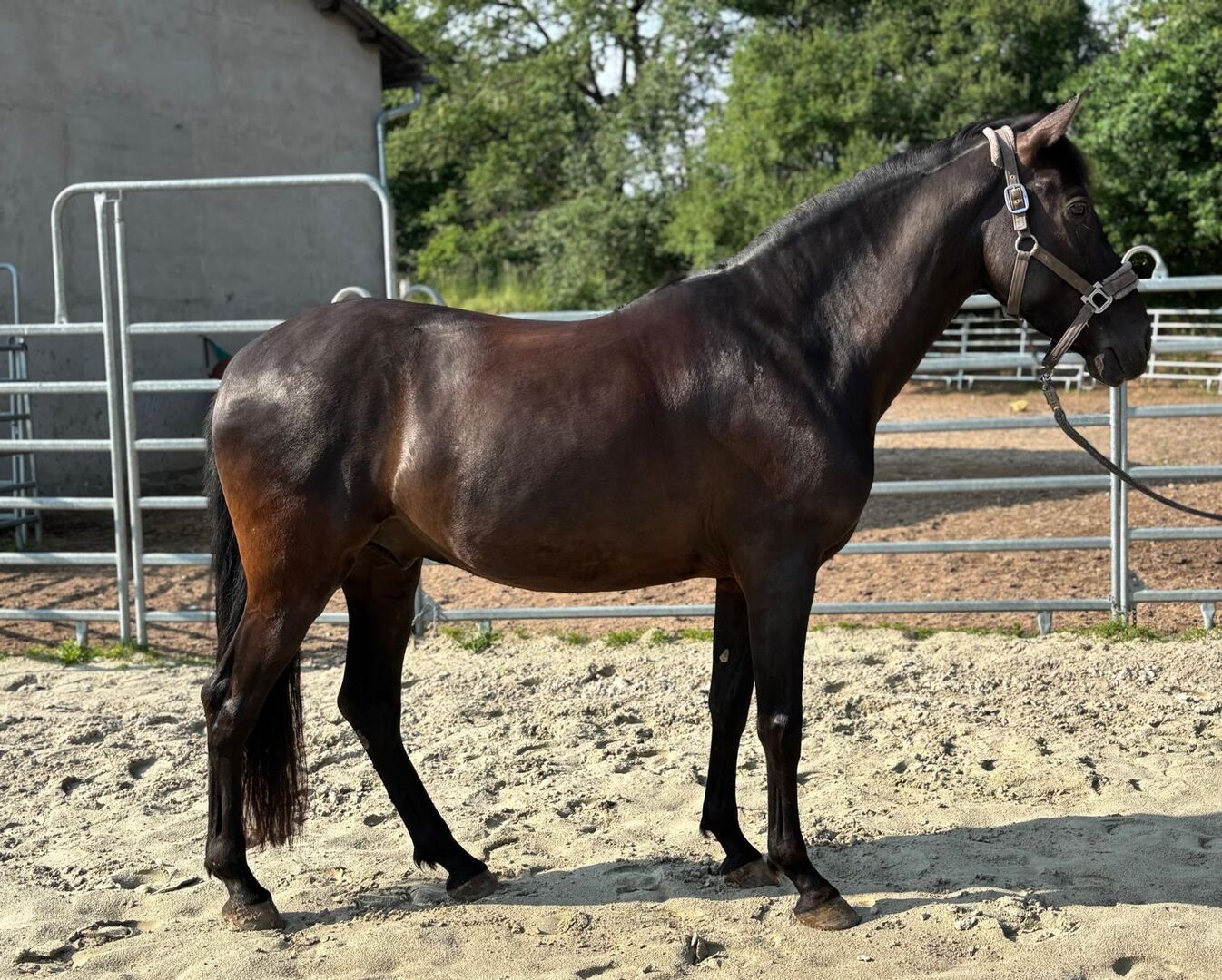 Gevoelige, zeer sociale Andalusische ruin - Plaats: 96160 Geiselwind Negrito- gevoelige en zeer sociale Andalusische ruin, geboren in 2017 en met een stokmaat van 158 cm. Hij is een mooi zwart paard met een gevoelig karakter. Negrito heeft een mensgericht, nieuwsgierig en gevoelig karakter. Hij is geen paard voor ruige ruiters, maar heeft empathie en een vaste hand nodig. Hij leert heel snel en reageert uiterst gevoelig op hulpen. Zoals typisch is voor Spaanse paarden, heeft hij veel go, maar hij kan op elk moment gereguleerd worden en vertoont geen ondeugendheid zoals bokken, steigeren of doorlopen. Onder het zadel vraagt Negrito om een rustige zit en een vaste hand, daarom is hij meer geschikt voor ervaren ruiters die bekend zijn met Spaanse paarden. Hij heeft een goede basisopleiding, loopt zelfverzekerd in de basisgangen en is al begonnen met zijgangen. Zijn training wordt begeleid door een professional om hem zo goed mogelijk te begeleiden. Hij gaat zowel alleen als in een groep naar buiten, hoewel hij nog wat onzeker is in zijn eentje. Omdat hij vrij slank gebouwd is, is hij geen zwaargewicht (70-80 kg). Negrito leeft momenteel in een open stal in een gemengde kudde, waar hij laag in rang staat, erg sociaal is en graag met soortgenoten speelt. Een optioneel aanpasbaar Schleese-zadel kan tegen een speciale prijs worden aangeschaft, zodat de nieuwe eigenaar gemakkelijker aan de slag kan. Als je op zoek bent naar een gevoelige Andalusiër die leergierig is en veel hart en karakter heeft, dan is Negrito misschien wel iets voor jou!