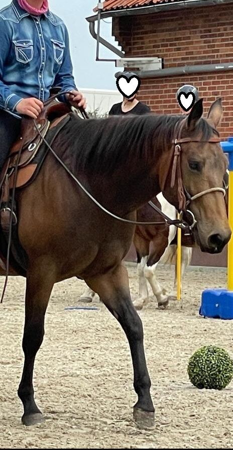 geweldige, mooie Quarter Horse merrie - Super makkelijk te rijden Quarter Horse merrie met een heel lief karakter zoekt een nieuwe thuis. Ze is geboren in 2019 met een stokmaat van 149 cm. Echt een geweldige merrie, heel sociaal, braaf en heel beleerbaar. Met wat power, niet gedreven of lui. Compact en goed gebouwd evenals gezond (grote AKU zonder bevindingen is aanwezig). Ze kan heel goed bewegen en is ideaal voor de ranch maar kan ook heel cool een trail aan. Ze is in basistraining en is ijverig en ontspannen in haar werk. Ze is een ideaal paard voor het hogere niveau van recreatief rijden en voor iemand die zijn paard zelf wil opleiden.