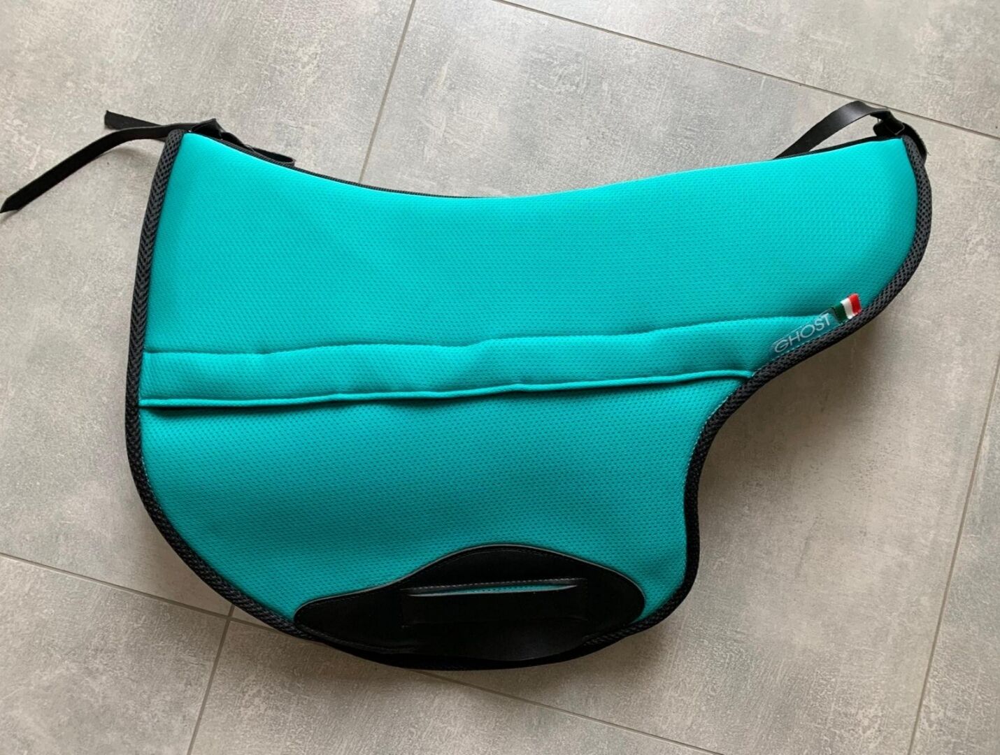 Ghost Cavallin Toscana Tango, boomloos met stijgbeugels - Hallo, ik bied een Ghostsattel model Tango aan uit de Cavallin serie. Vergelijkbaar met de Toscana maar anders gesneden. Het zadel is gemaakt van zwart Lorica, imitatiesuède. Het zadel heeft geen basis, het is boomloos en toch is de ruggengraat vrij. Ik heb het gebruikt met stijgbeugels, deze zijn niet inbegrepen in de aanbieding. Het zadel wordt geleverd met het bijpassende originele Ghost zadeldek met de dikke inleg, mint/turquoise. Alles is in standaardmaat, vanaf broekmaat 42. Weinig gebruikt (10 keer), zo goed als nieuw, maar een paar witte haren zijn niet te verwijderen. In de singelstoten zijn achteraf gaatjes gemaakt, als je dit niet mooi vindt geen probleem je kunt ze gewoon vervangen. Het zadel is 58 cm lang. Het onderlegger heeft een ruglengte van 64 cm. En beide hebben een zijlengte van 40cm