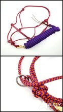 GKH Professioneel Touw Helix Schuifring Halster VALERIA met Grondwerk Touw - Knoop halster Valeria met grondwerk touw Dunner Professional Touwknoop halster met schuifring en grondwerk touw in de kleur donker oranje en paars.