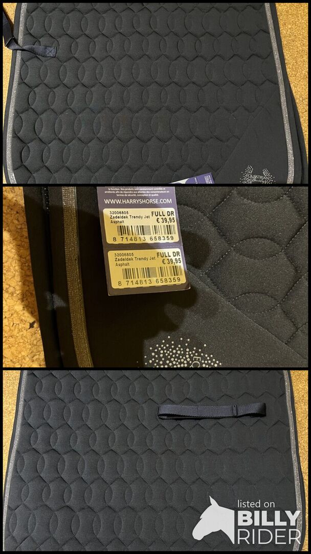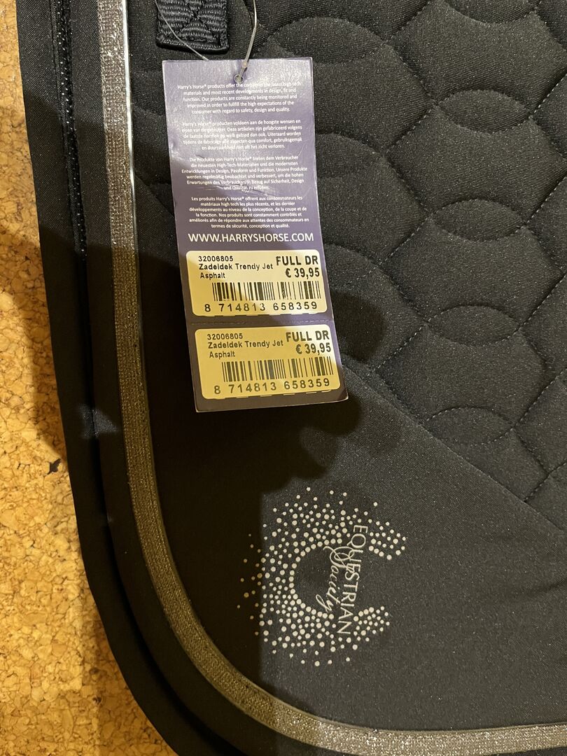 Gloednieuw zadeldek, dressuurzadeldek met glitter van Harry's Horse - Ik verkoop dit prachtige gloednieuwe dressuurzadeldek met geweldige glitterrand en glitterdetails. Nieuw met label. Nieuwprijs was 39,95€. De kleur is zoals op de foto, zou hem nu antraciet noemen.