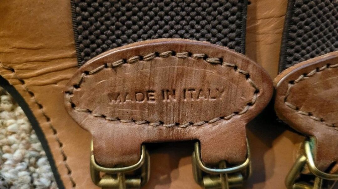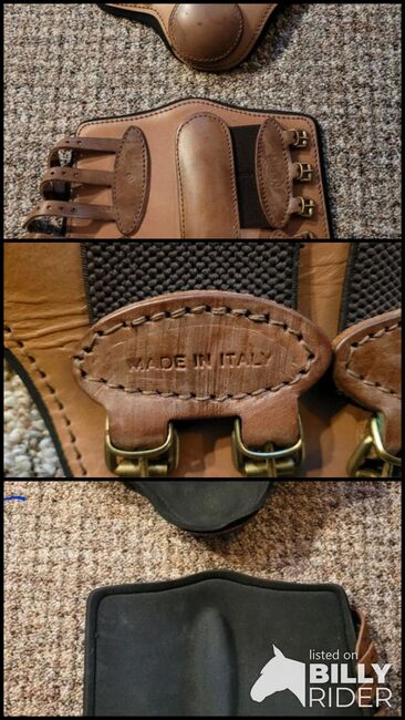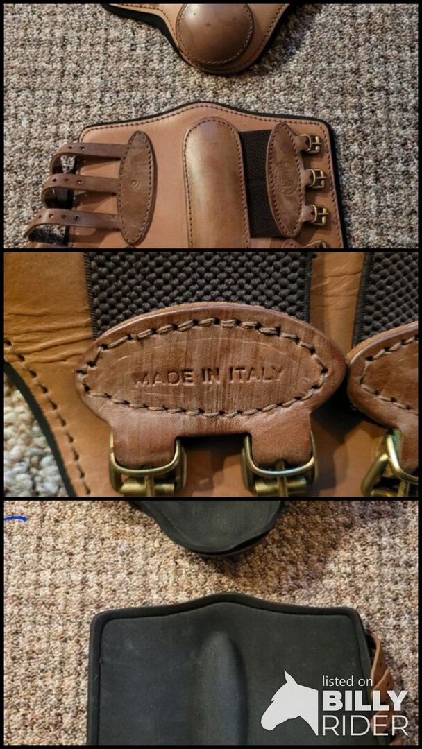 Gloednieuwe Italiaanse leren legging - Zeer mooie gloednieuwe Italiaanse leren slobkousen, met gespsluiting aan de zijkanten. Nooit gebruikt. Onmiddellijk volledige betaling bij afhalen. Garantie en retourneren uitgesloten. Verzendkosten niet inbegrepen in de prijs.