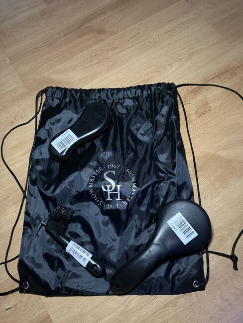 Gloednieuwe reinigingsset - Ik verkoop een nieuwe en ongebruikte verzorgingsset van Showmaster. Het bevat een hoevenkrabber, een manenborstel en een normale borstel. Er zit ook een gymtas bij.