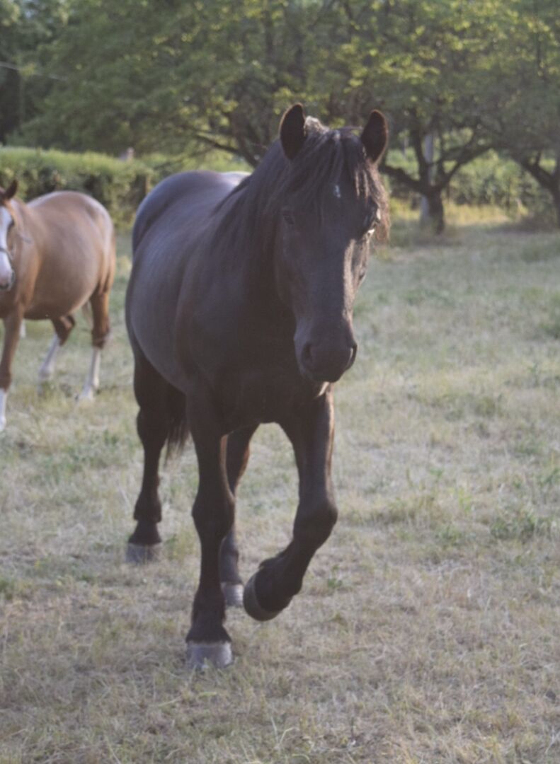 Onder het zadel is hij recreatief bereden in de wei en in de bak, hij toont zich altijd voluit en is meer een paard dat je een beetje moet rijden. Daarom kunnen we ons hem goed voorstellen en ook heel goed met kinderen. Hij geeft zijn hoeven goed en staat bij het groomen.