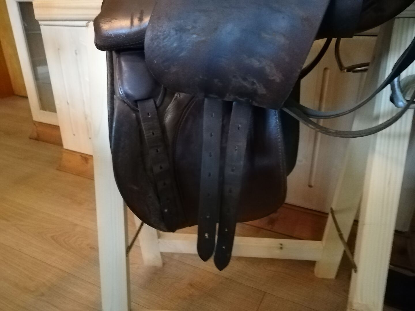 Stijgbeugels (inzetstukken moeten vervangen worden) en riemen zijn inbegrepen.