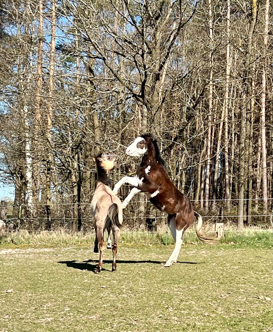 Gotta Silver Spook - mooie Quarter Horse jonge hengst met top afstamming - Plaats: 96160 Geiselwind Gotta Silver Spook - een Quarter Horse hengst geboren in 2023 met een zeldzame en opvallende bruine splash kleuring. Hij draagt zowel Splash 1 als Splash 2 en zal een geschatte stokmaat van ongeveer 145 cm bereiken als hij volgroeid is. Visueel is hij een absolute blikvanger: correct gebouwd, compact, met rechte benen en mooie bespiering - een allround geslaagd exterieur dat meteen in het oog springt. Maar het is niet alleen zijn uiterlijk dat indruk maakt. Ook qua karakter heeft hij alles wat je in een jong paard kunt wensen. Hij is mensgericht, nieuwsgierig, koel van aard en in het dagelijks contact altijd vriendelijk en braaf. Hij vertoont geen koppig gedrag, wordt regelmatig gehanteerd, kent wandelingen in de wei, eenvoudig grondwerk en bezoeken aan dierenarts en hoefsmid. Hij is ingeënt en ontwormd in overeenstemming met zijn leeftijd en groeit op in een kudde met andere jonge paarden. Zijn bewegingen zijn expressief en wijzen op een veelbelovende toekomst. Dankzij zijn eersteklas afstamming op het gebied van reining en fundament beschikt hij over de beste voorwaarden voor veelzijdig gebruik als allrounder of in de sport. Hij is genetisch 6-panel n/n getest. Helaas heeft hij dit jaar zoete jeuk ontwikkeld, maar dit is heel goed te behandelen met crème. Door deze oneffenheid zal hij alleen verkocht worden aan de allerbeste handen voor ver onder zijn werkelijke waarde. Indien gewenst kan hij tegen betaling gecastreerd worden. AQHA papieren en paardenpaspoort zijn uiteraard aanwezig. Gotta Silver Spook is een heerlijke jongeling met veel potentie en de juiste instelling - een geweldig paard voor mensen die op zoek zijn naar een speciale partner voor de toekomst.