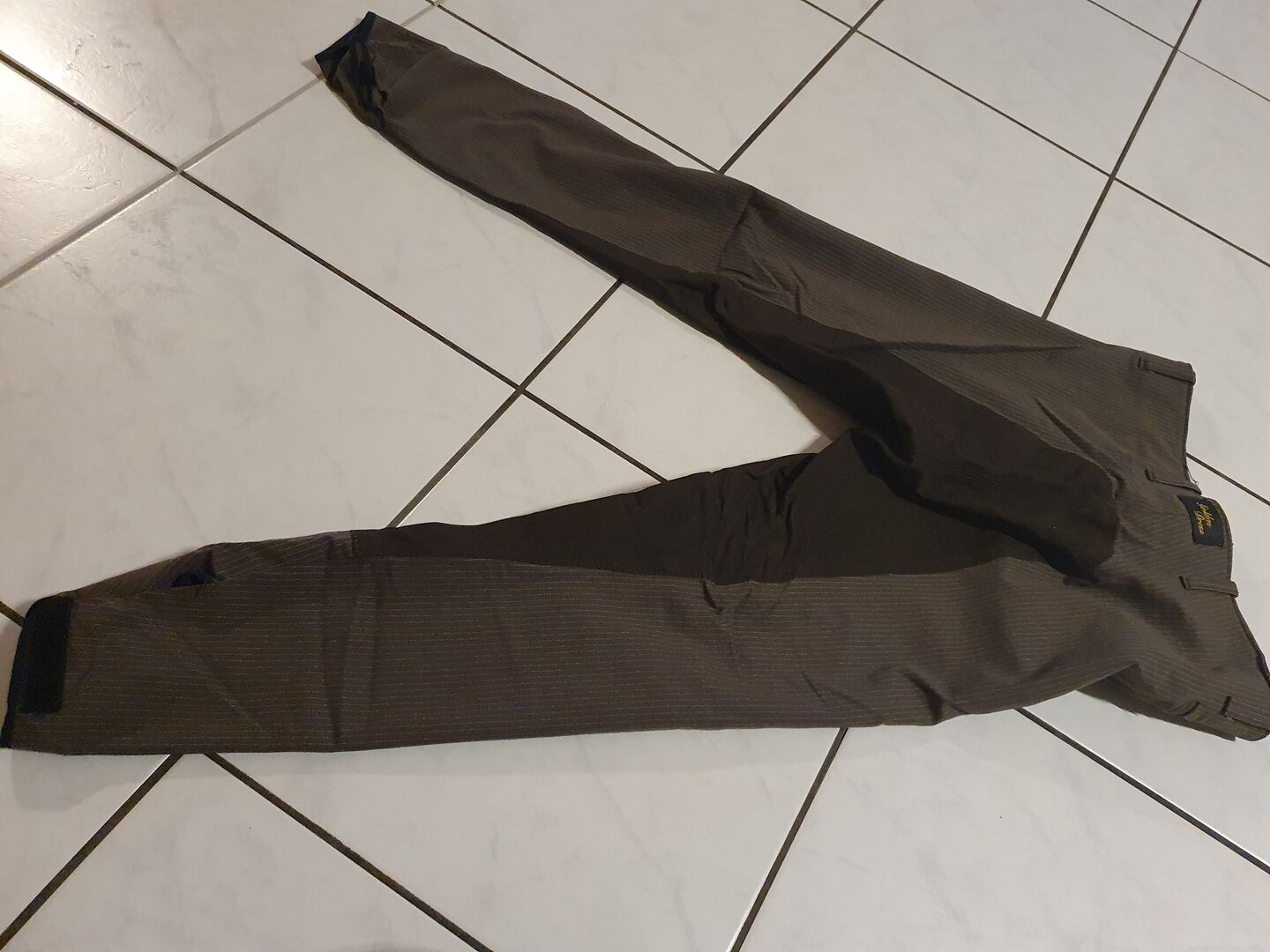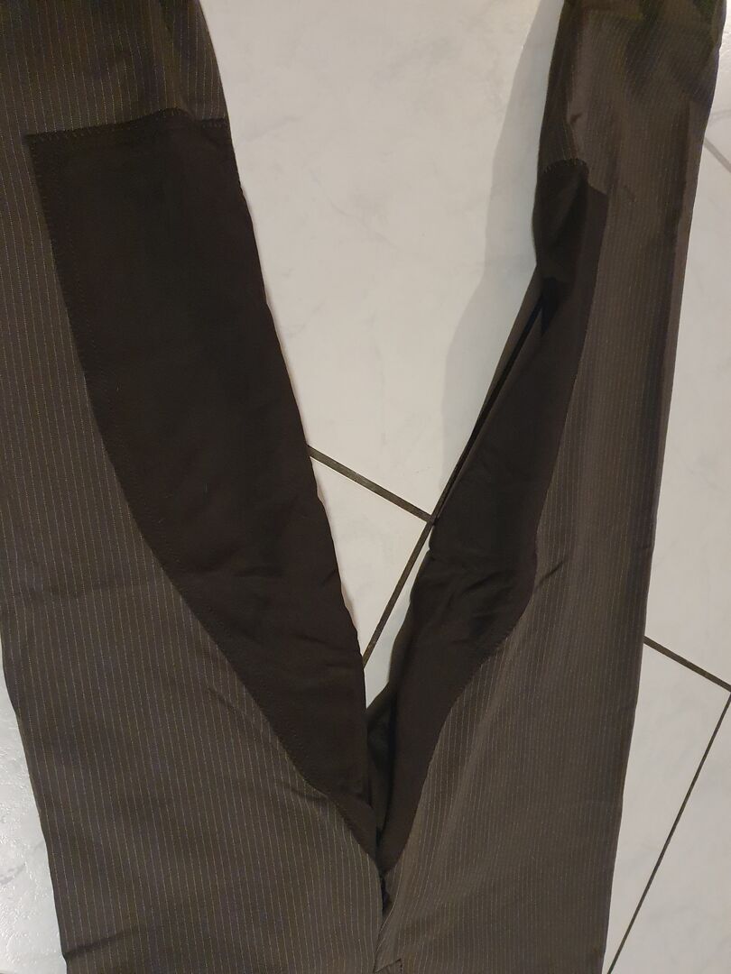 Gouden Jurk Bruine Rijbroek Gr 84 - Ik heb een paar Golden Dress rijbroeken in maat 84 in bruin met krijtstrepen en 3/4 kunstleren bies. Past geweldig en draagt geweldig. Ik verkoop ze alleen omdat ik voor mijn verjaardag drie nieuwe rijbroeken heb gekregen.