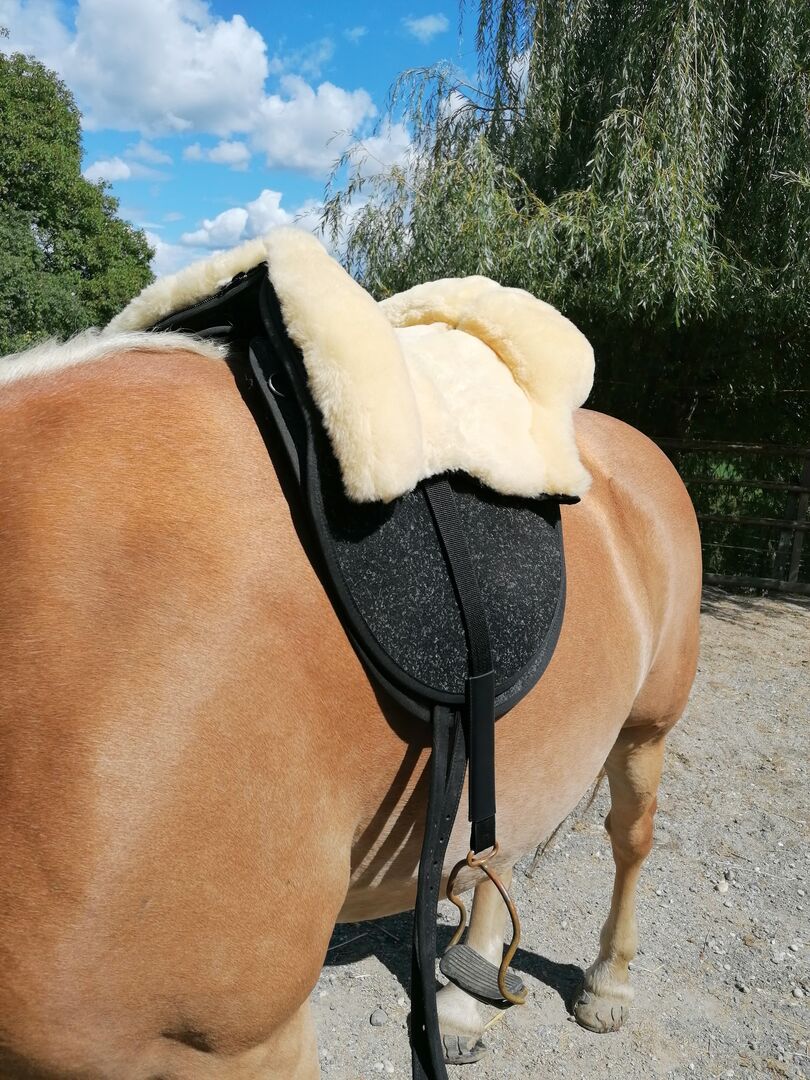 Het zadel is weinig tot niet gebruikt, dus zowel de vacht als de pommels zijn nog super pluizig en nog niet ingeburgerd. Vanwege het hoofdgebruik is het Engelse zadel op zoek naar een nieuwe werksfeer.
