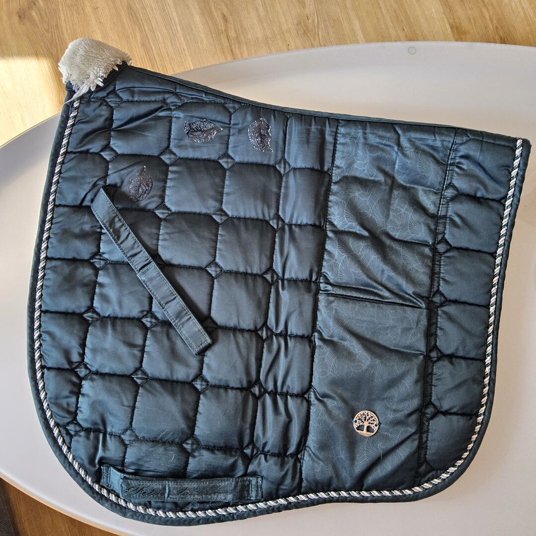 Het zadeldek heeft een magnetisch gsm-zakje aan elke kant en lamsvacht op de schoft.