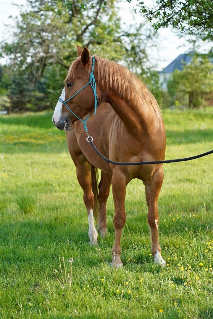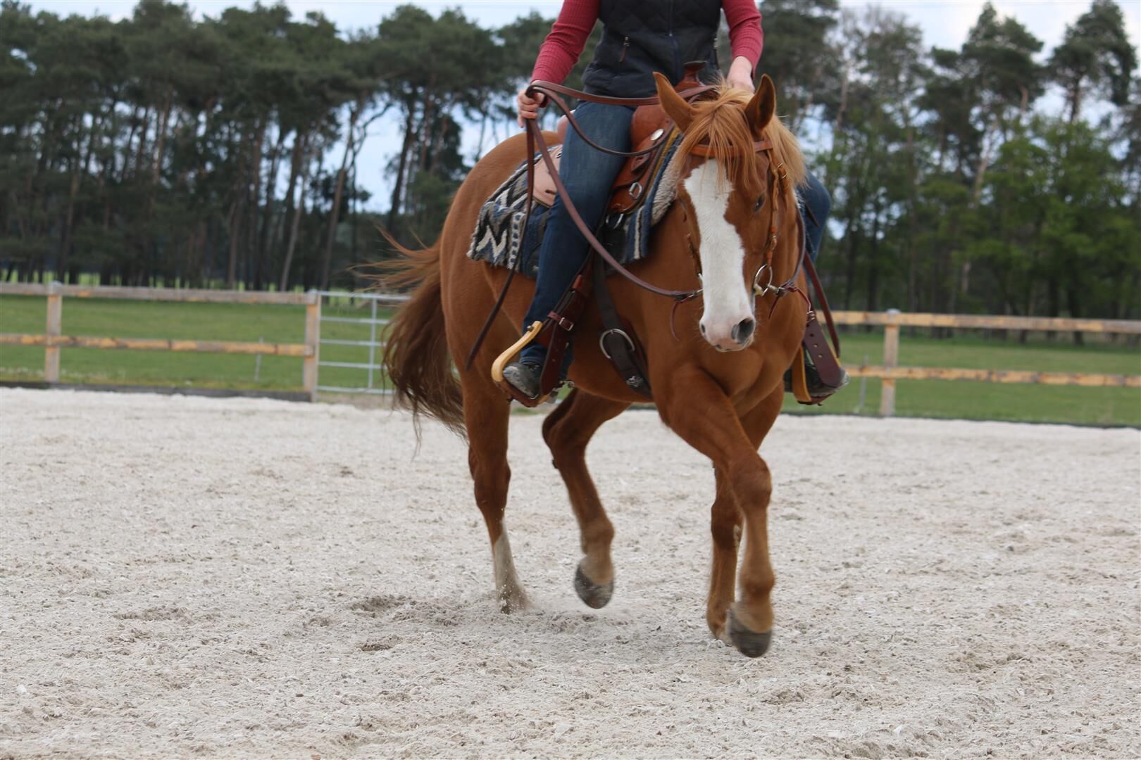 Grote, gezellige Quarter Horse/Paint Horse ruin - Plaats: 03058 Neuhausen Te koop staat CT's Goldfire O Lena, genaamd Goldie. Geboren op 12.05.2019, huidige stokmaat 145 cm, kleur sorrel. Hij wordt momenteel gereden op de Thunder Horse Ranch in 03058 Drieschnitz. Hij kwam om ingereden te worden en vanaf het begin werd duidelijk dat hij een geweldige beweger is en altijd fijn aan de hulpen. Goldie is vaardig in alle drie de basisgangen, inclusief zijgangen en gymnastische oefeningen. Hij werkt altijd gemotiveerd en probeert het zijn ruiter altijd naar de zin te maken. Goldie kijkt uit naar een ambitieuze ruiter die hem zal aanmoedigen en uitdagen. De ruin is erg mensgericht, dus hij zoekt iemand die hem aandacht geeft. Hij is vertrouwd met alledaagse omgevingsfactoren (bijv. auto's, honden, wielladers) en is nieuwsgierig en ruimdenkend als het gaat om nieuwe dingen. Hij is braaf bij de hoefsmid en gaat goed op de trailer. Hij heeft een groot algemeen onderzoek gehad zonder bevindingen.