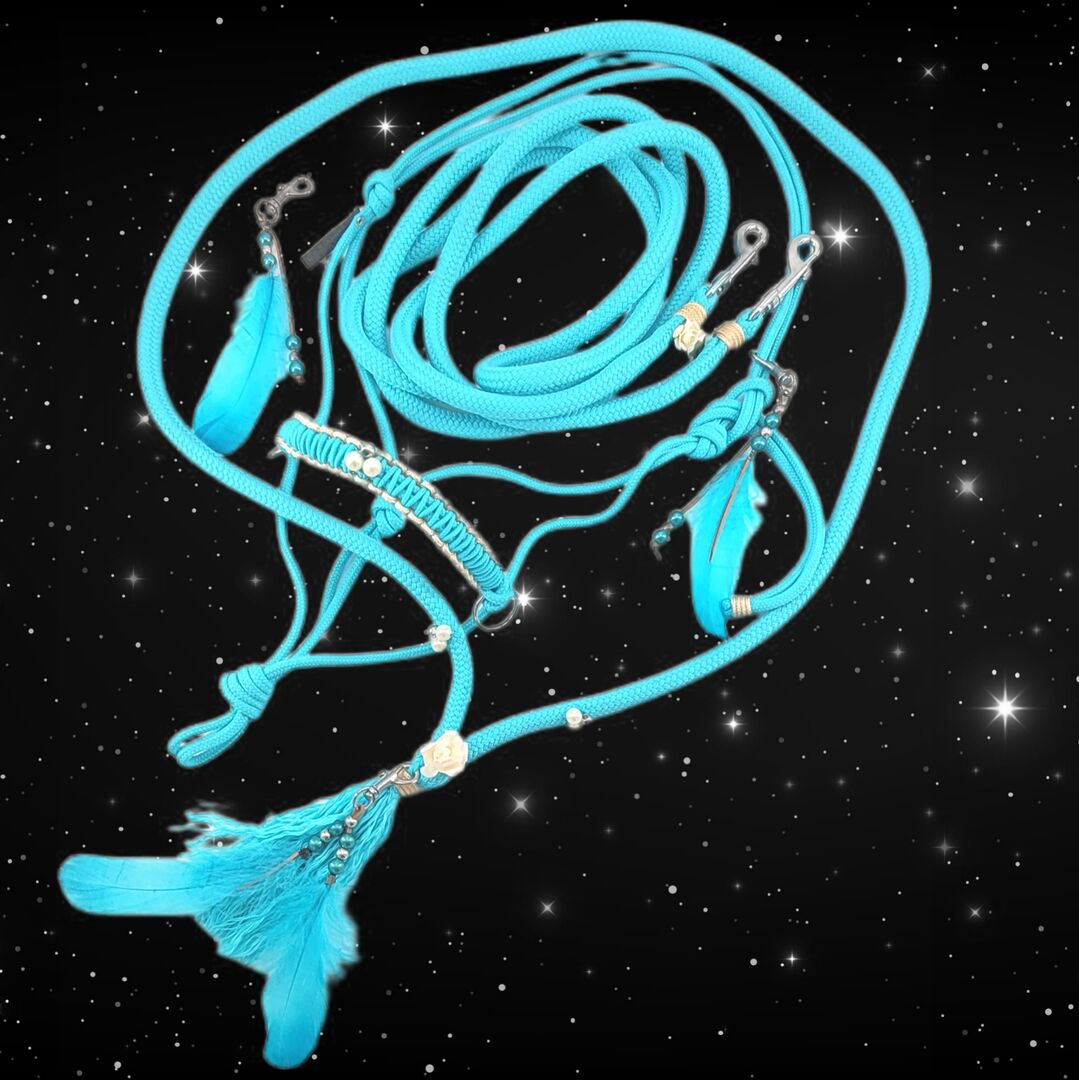 Grote set sidepull teugels nekring COB kleur Aqua - Top set van de Freespirit Horse Art fabriek