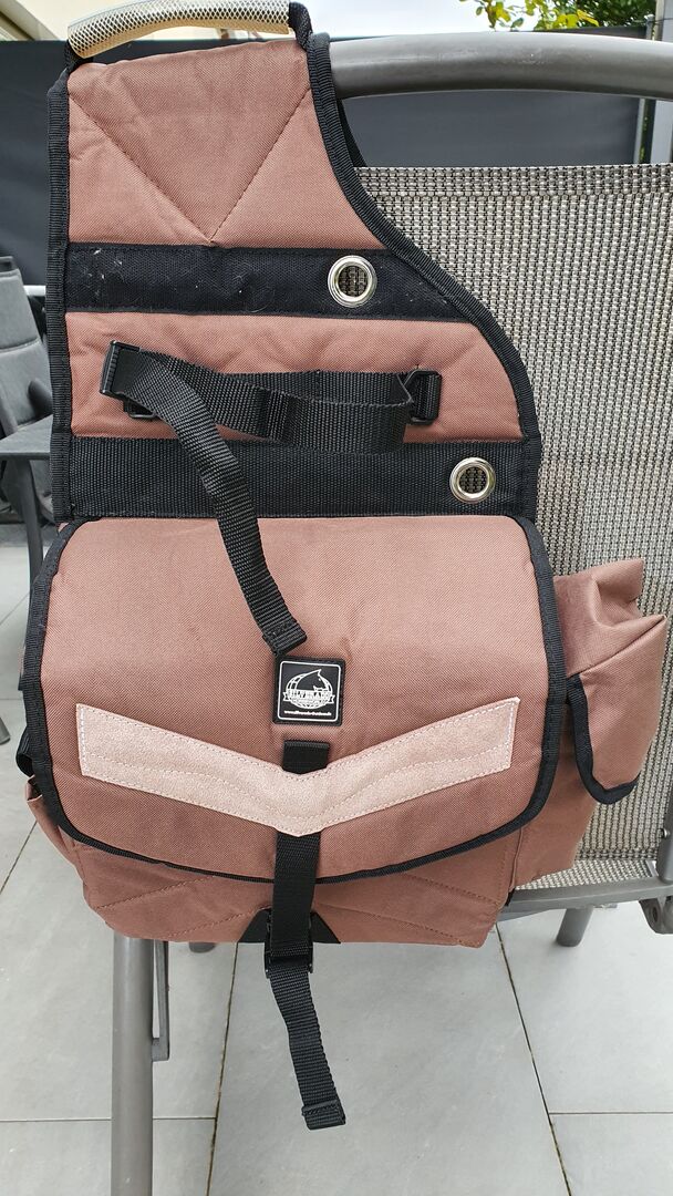 Grote wandelzadeltas van nylon, bruin, geschikt voor westernzadel! - Ongebruikte waterafstotende nylon zadeltas, bruin, met diverse extra zijvakken en sluitingsmogelijkheden, en ook 2 zakken voor drinkflessen. Afmetingen: H= 25-35cm variabel, B= 28cm, D= 12cm Geschikt voor westernzadels incl. een buiksingel / zelf te maken met sterke klittenbandsluitingen, als het paard dit accepteert, zodat de fietstassen beter passen tijdens het draven, maar wij hebben dit nooit getest. De fietstassen hebben een tijdje ongebruikt in de stal gelegen en nu geef ik ze weg, omdat trailrijden voor ons niet meer aan de orde zal zijn en ze gewoon te mooi zijn om waar te zijn. Je mag me een realistisch bod doen!