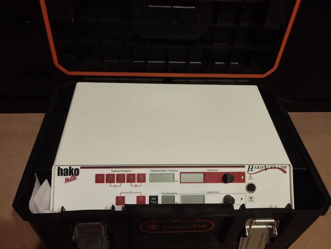 Ik verkoop mijn Hakomed HakoVet 1.200 die ik rechtstreeks van Hakomed heb gekocht in 01/2023. Het is zeer weinig gebruikt en is daarom in uitstekende staat. Hij wordt verkocht met oplaadkabel, adapter, kabel (5 stuks), paardenaccessoires, accessoires voor kleine dieren, gebruiksaanwijzing, beschermhoes (lichte scheur, functie niet aangetast).
