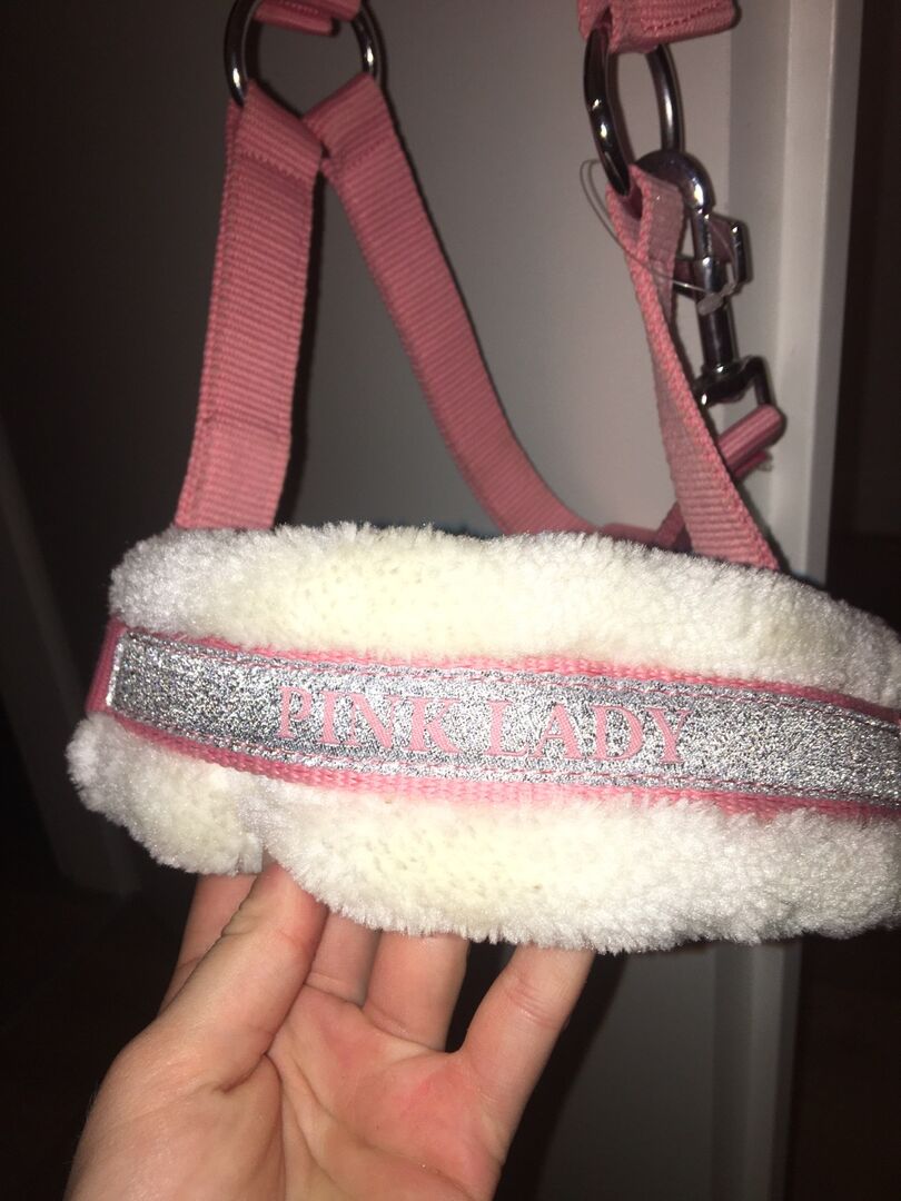 Hallo, Ik verkoop mijn gloednieuwe halster van Harryshorse. Er staat Pink Lady in glitter op de voorkant. Als u vragen heeft of geïnteresseerd bent, neem dan contact met me op.