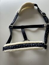 Halster COB met touw - Ik verkoop een halster met bijpassend touw! Maat COB In marineblauw. Neusriem in de kleuren van het touw. Neus en hals zijn met bont. Verzending is mogelijk tegen een vergoeding.