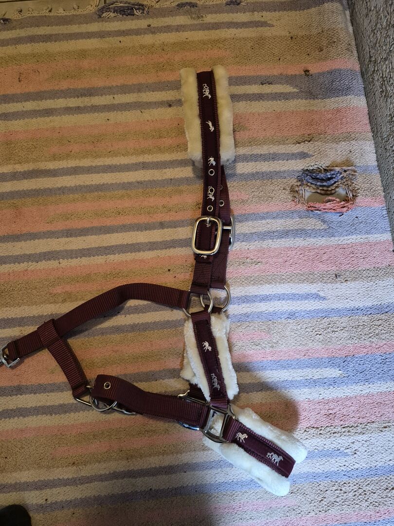Halster in bordeaux rood, maat: Pony - Ik bied hier een prachtig halster aan in bordeaux rood maat pony, is maar één keer gedragen, zeer goede staat Ophalen is mogelijk