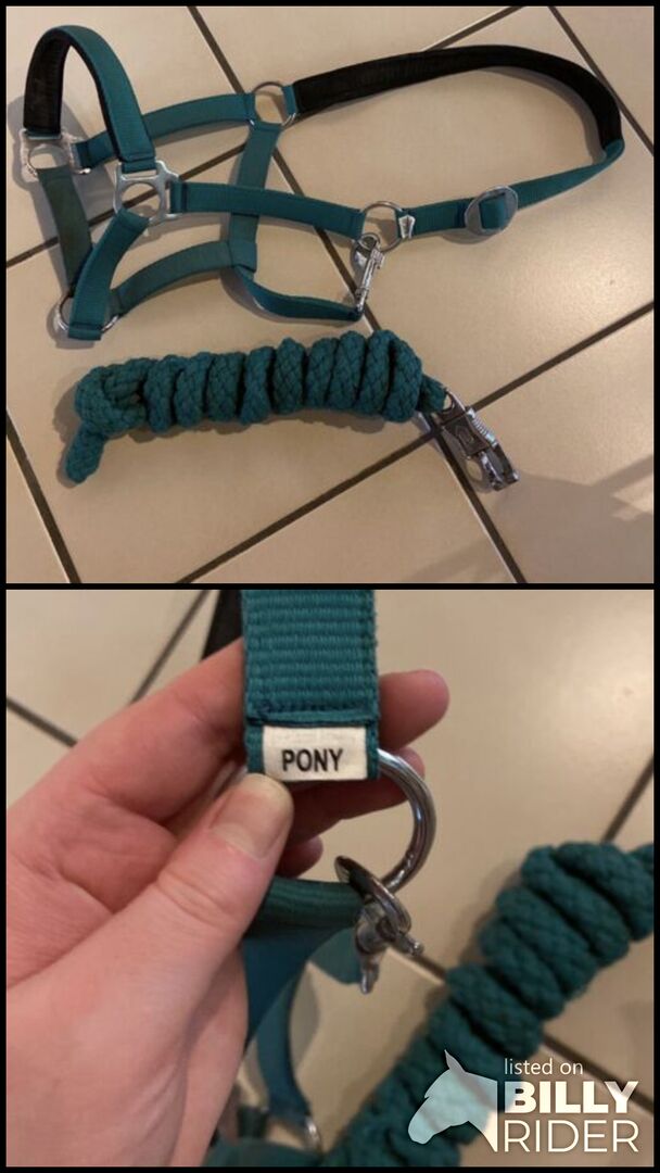 Halster met paniekhaak touw - Ik verkoop een halster met een paniek halstertouw. Het is een paar keer gebruikt, maar helaas is het te klein geworden voor mijn paard. De kleur zou turquoise moeten zijn